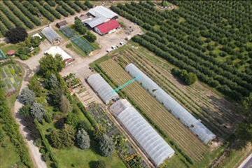 A gyümölcs és díszfa iskola 8 ha nagyságú amely 2 ha