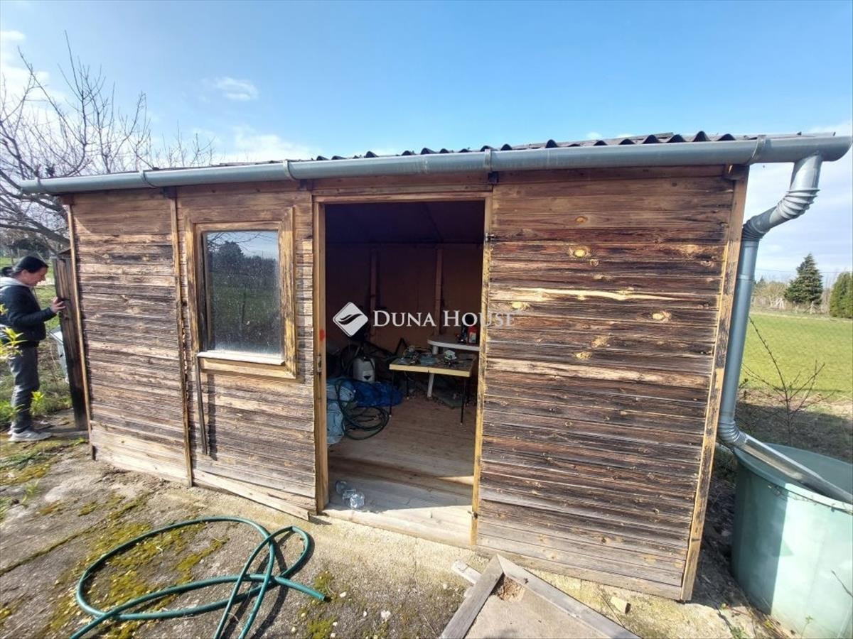 Található rajta egy felújítandó kis ház, és egy fedett gépkocsi beálló.