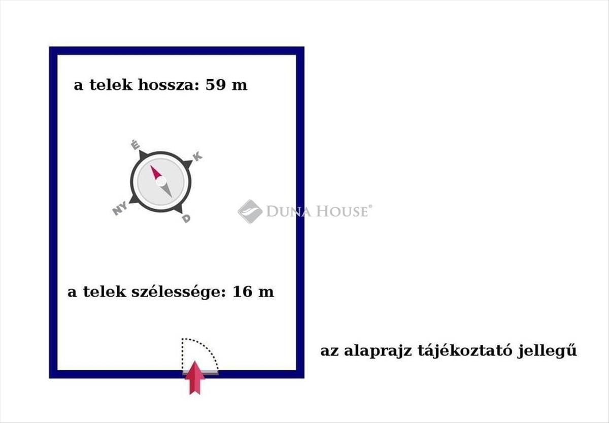 A telek szélessége 16 m, hossza 59 m.