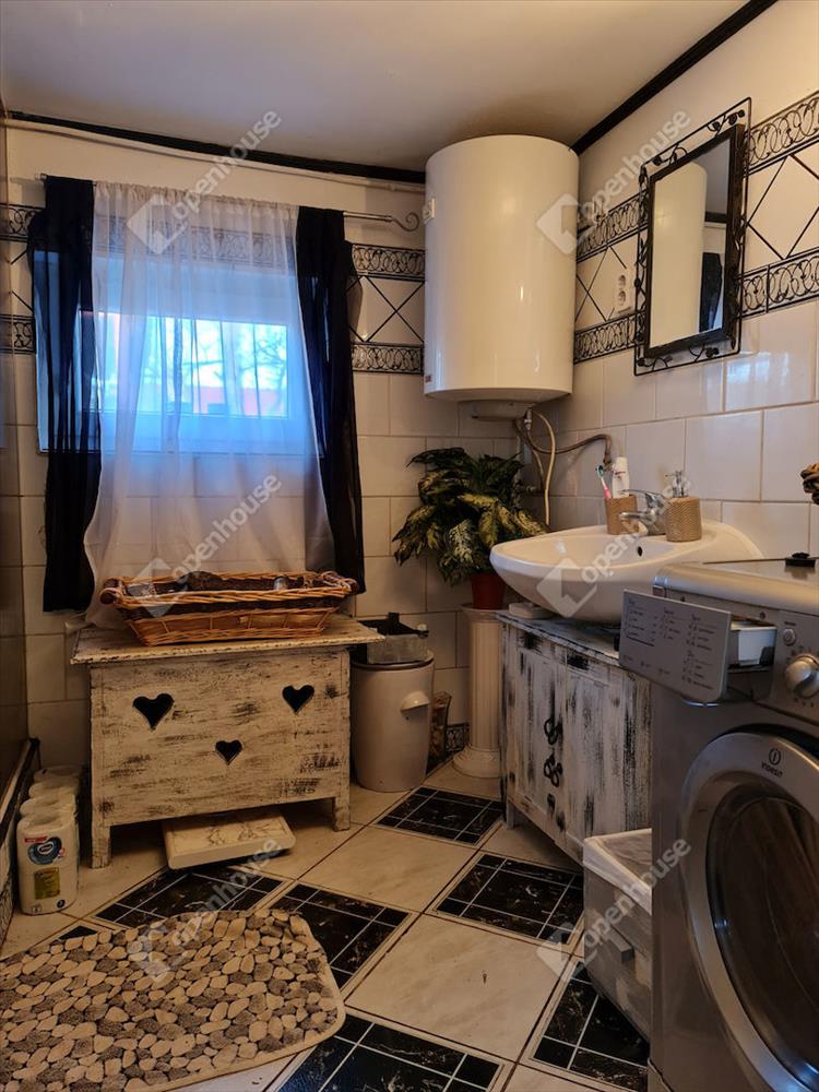 A konyha-étkezőből juthatunk el a fürdőszobába, ahol tusoló került kialakításra és itt kaphat helyet a mosógép is.