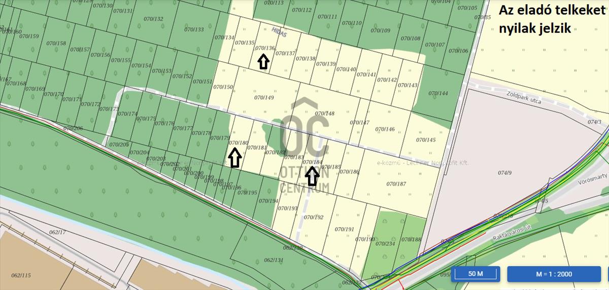 - Az ingatlanok gksz-11 övezetbe tartoznak, de az építés feltétele, hogy a telkek mérete elérje a minimum 2500 nm telekterületet, és földhivatali elbírálás és jóváhagyás szükséges az engedélyeztetéshez (a polgármester felajánlotta segítségét).
