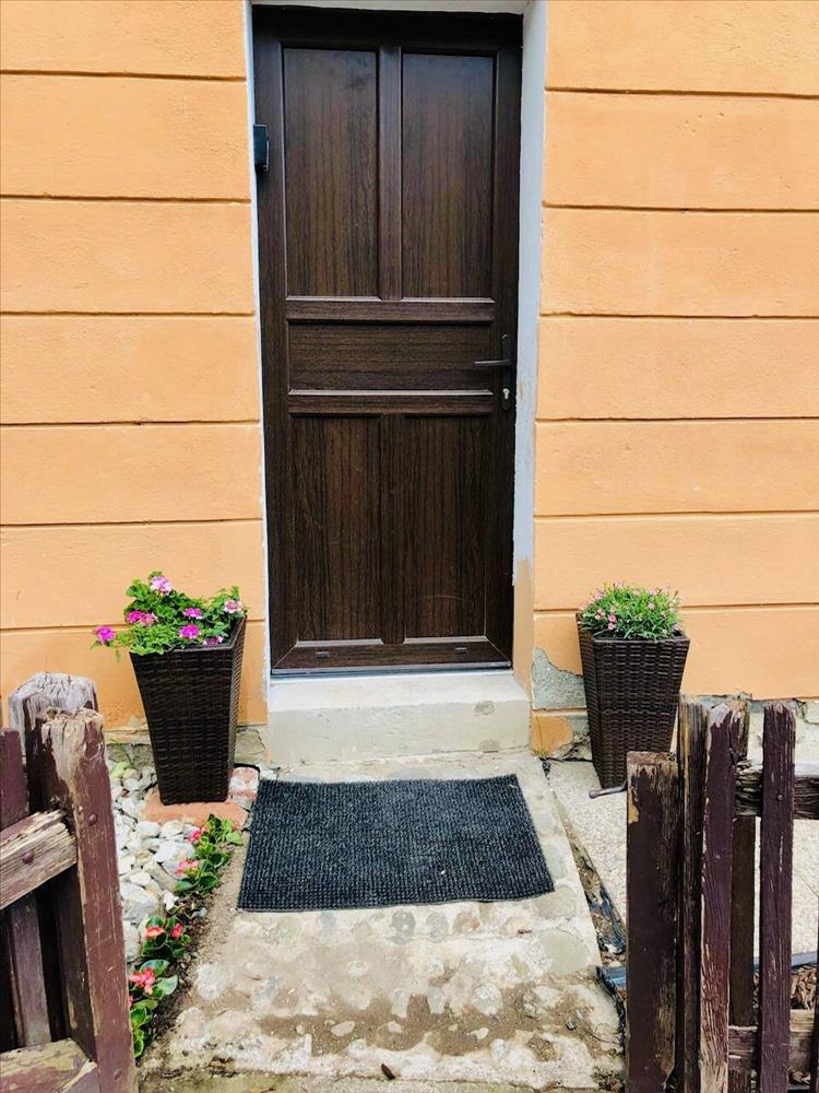 A sétányról egy 12 m²-es, kizárólagos használatú kis kertbe lépünk, amely közvetlen bejáratot biztosít a lakás földszintjéhez.