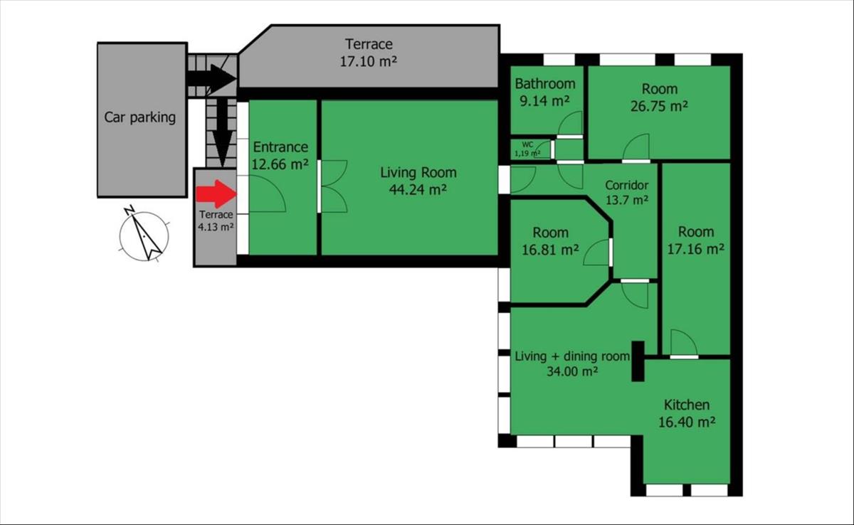 Terrace: 21. 2 M² (separated, garden-connected)