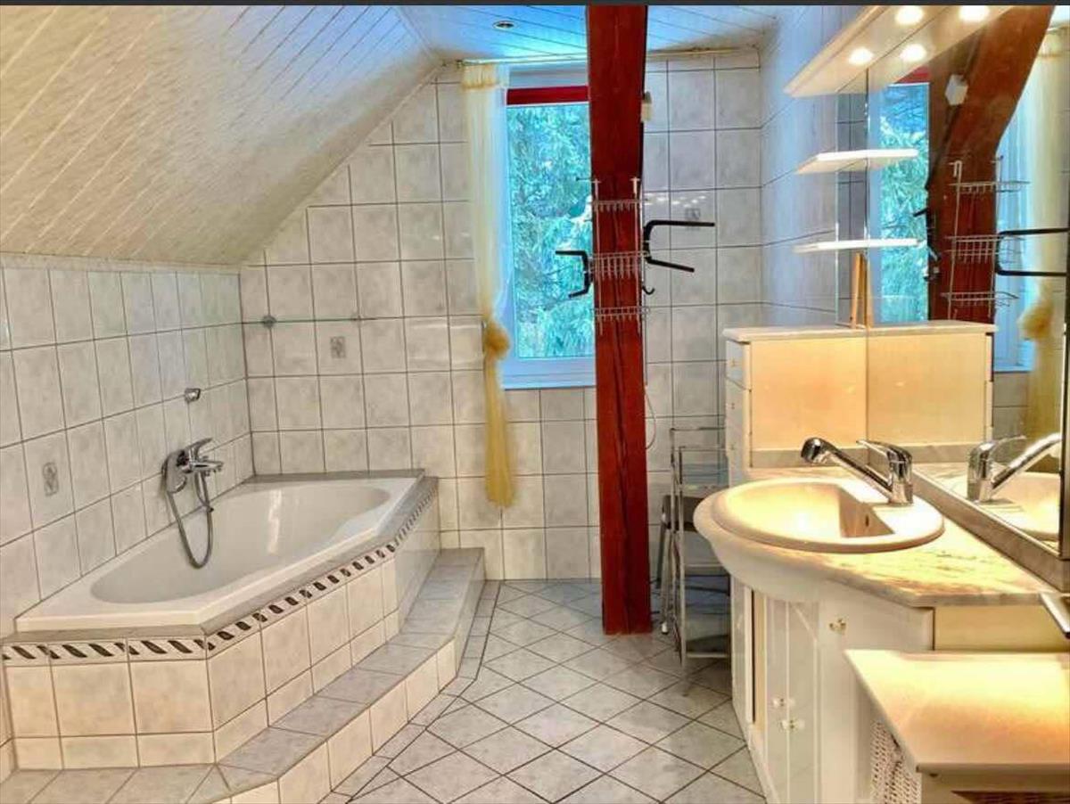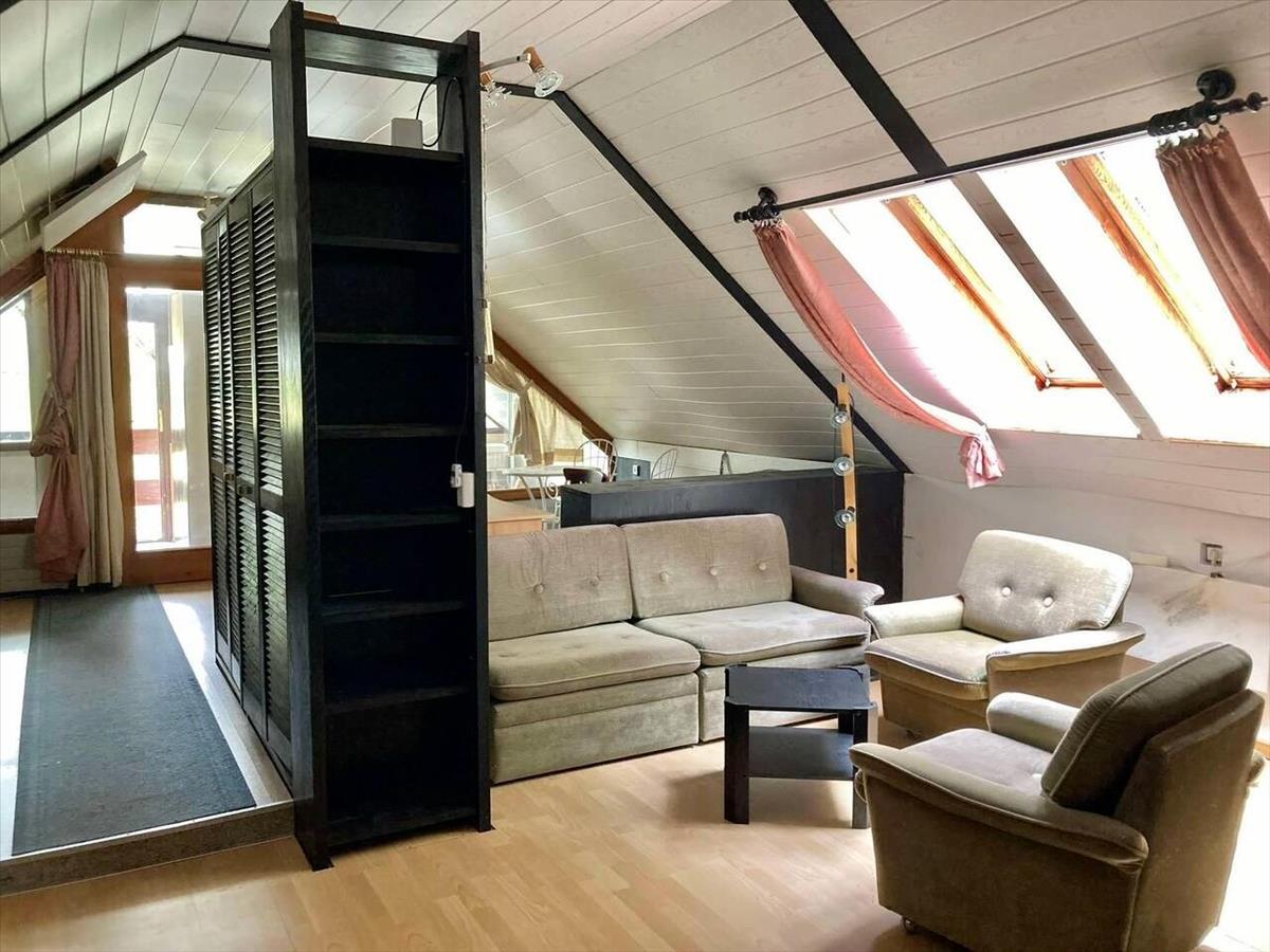 Zur Wohnung gehören ein überdachter Parkplatz, Terrassen, ein Gartenteich, ein kleines Holzhaus und ein separater Keller. Der parkähnliche, gepflegte Garten und die ruhige Umgebung bieten ideale Bedingungen für Erholung, während die Region zahlreiche Möglichkeiten für aktive Freizeitgestaltungen wie Skifahren, Wandern und Radfahren bietet. Die Immobilie kann leicht in zwei Wohnungen umgebaut werden, was sie zu einer komfortablen Unterkunft für mehrere Familien macht.