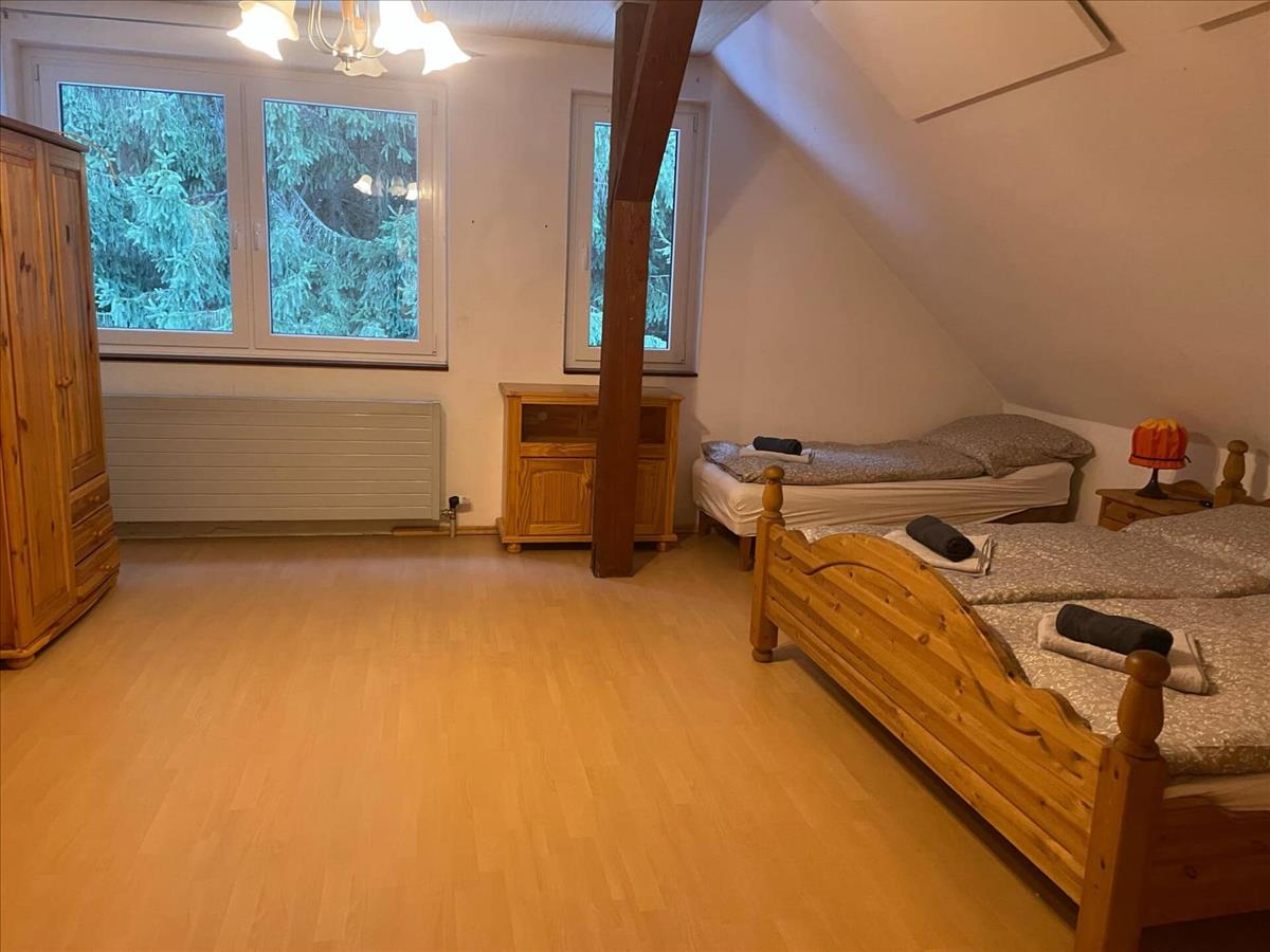 A lakáshoz fedett parkoló, teraszok, kerti , kis faház, valamint különálló pince tartozik. a parkosított, gondozott kert és a nyugodt környezet ideális a pihenéshez, míg a környék aktív kikapcsolódást kínál, mint síelés, túrázás és kerékpározás. Az ingatlan könnyen átalakítható két lakássá, így több család számára is kényelmes otthont biztosít.