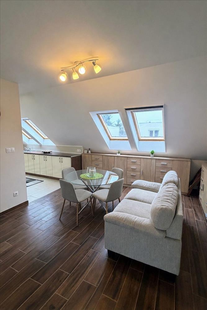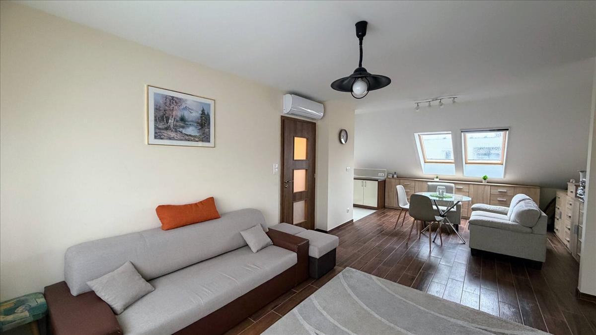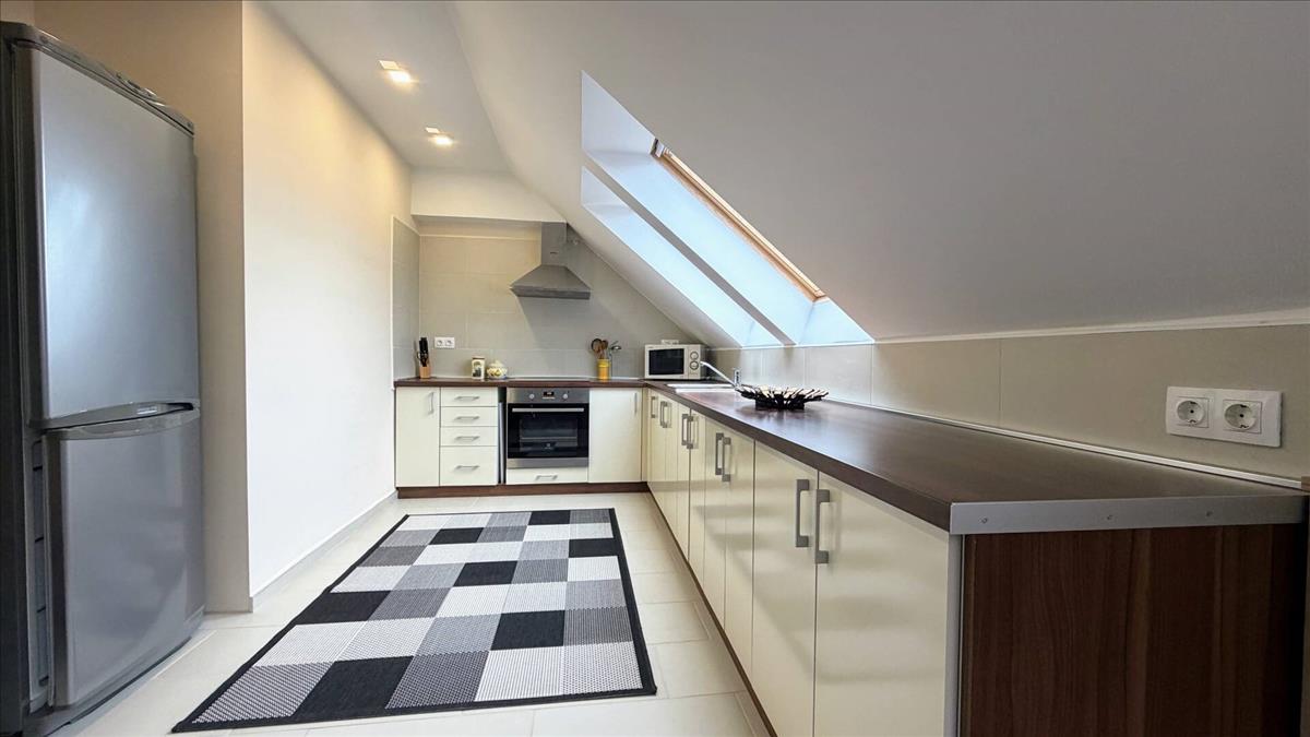 Baján nyugodt, mégis belvároshoz közeli környezetben eladó egy 2020-ban kialakított, modern hangulatú klímatizált lakás egy kulturált társasház első emeletén. Az ablakok zsákutcára és belső udvarra néznek, így a város közelsége mellett a csend is garantált. Az ingatlan 80, 05 m² alapterületű, amelyből 63, 31 m² hasznos lakótér, így minden négyzetméter jól kihasznált és élhető. a lakás praktikusan kialakított: tágas előszobával indul beépített szekrénnyel, ahonnan külön nyílik a wc és a fürdő, majd egy világos, L alakú nappali–étkező–konyha térbe érkezünk, ahol beépített konyhabútor található. Emellett két külön nyíló szoba is van beépített bútorral, így akár dolgozószobának vagy gardróbnak is tökéletes. a félig tetőtéri kialakítás igazán hangulatossá teszi a teret, a padlófűtés pedig kellemes komfortot ad, amit radiátorok és törölközőszárító egészít ki. a lakás egyik nagy extrája a 5 m²-es erkély, ahol jól esik egy reggeli kávé vagy egy esti lazulás. Ez egy igazán napfényes, szerethető otthon, ami tökéletes bármely korosztály részére vagy első lakásnak pároknak vagy akár befektetésnek is. a parkolás az ingyenes közterületen megoldott, a belváros pedig 10 perc séta alatt elérhető. Megtekintési szándékával keressen bizalommal. Eladó ingatlanában is szívesen segítünk! Teljes körű ügyintézés: hitel, energetikai tanúsítvány és megbízható ügyvédi háttér. FIX 3% lakáshitelre megvehető