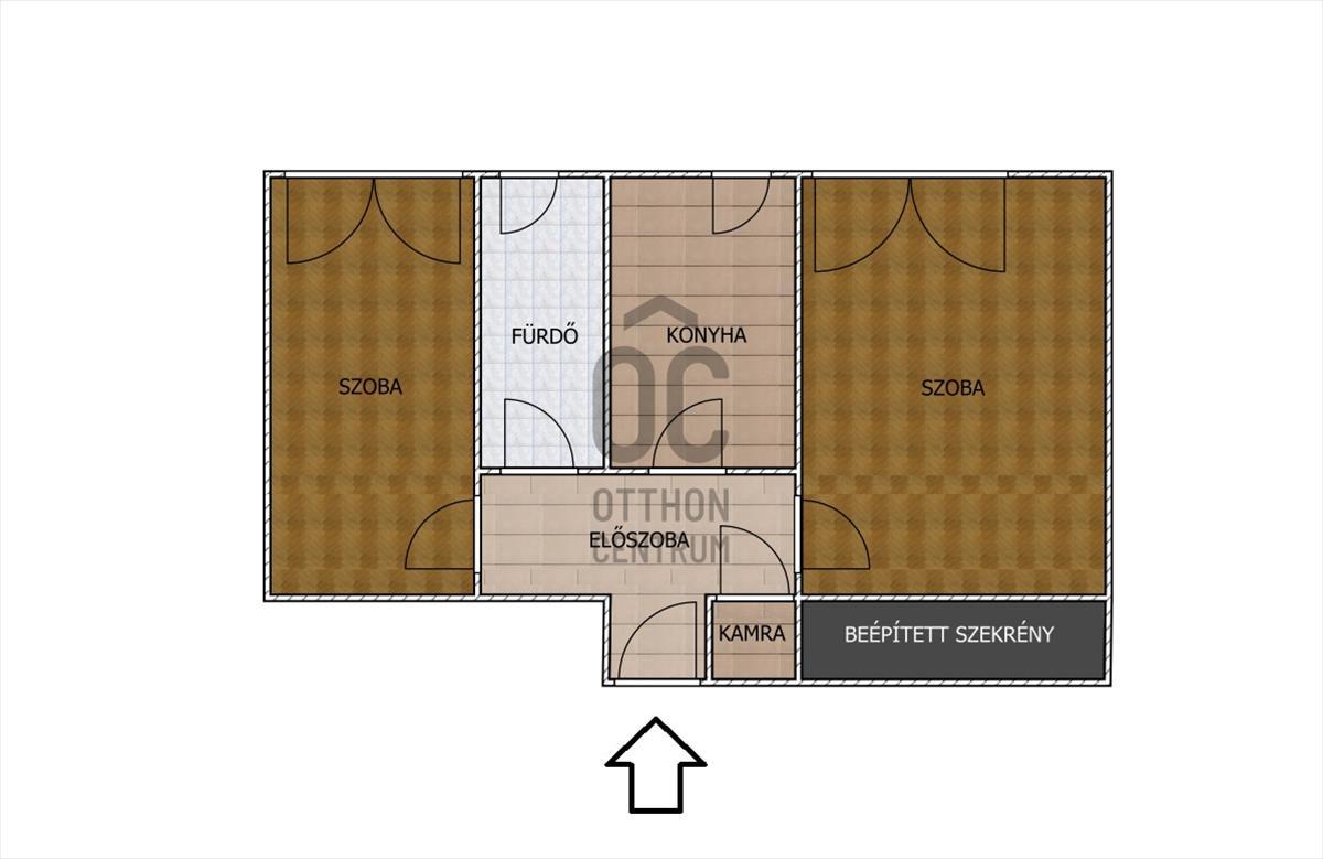 - 48 m2 ( 2 szoba, konyha, fürdőszoba, előszoba/közlekedő, kamra)