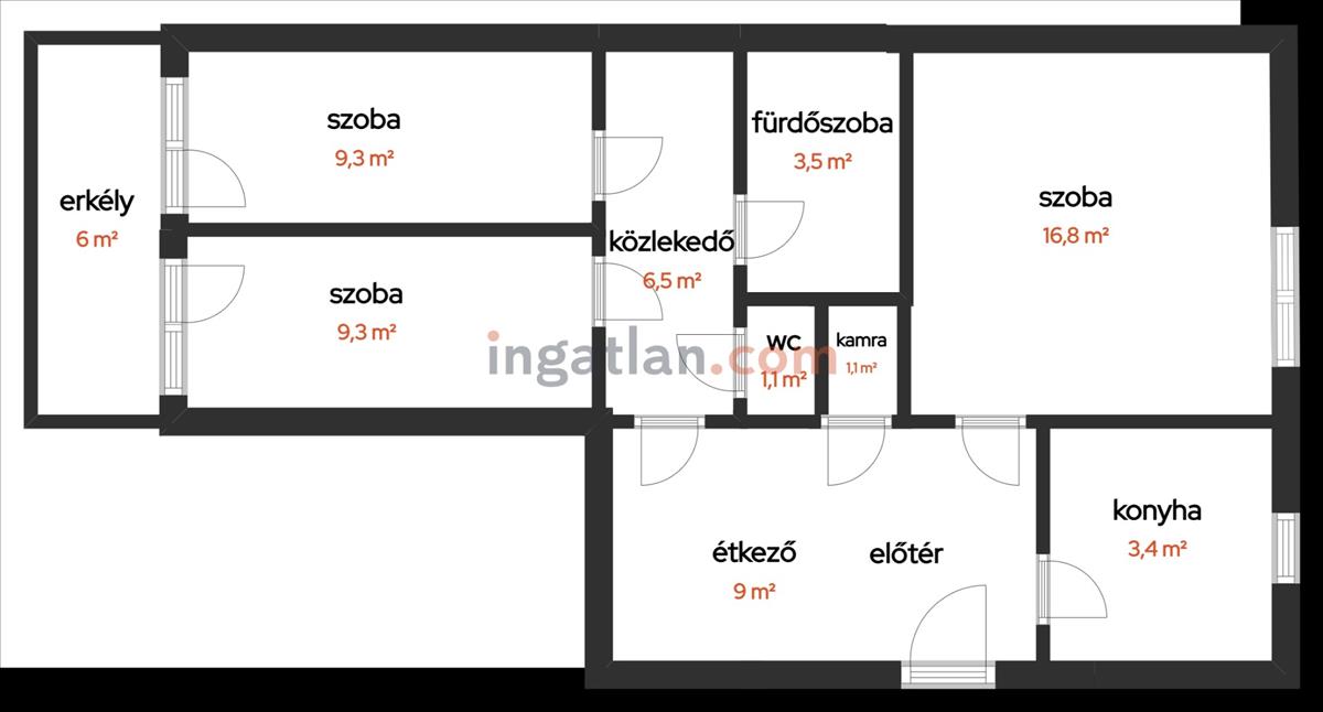 Lakótér: 60 m2 + 6 m2 erkély