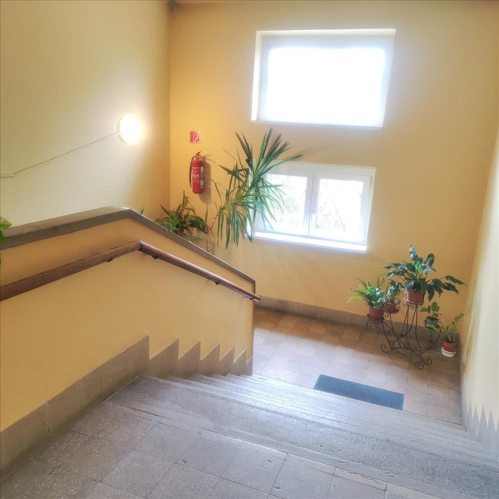 A tégla építésű lakás egy 20 lakásos társasház első emeletén található.