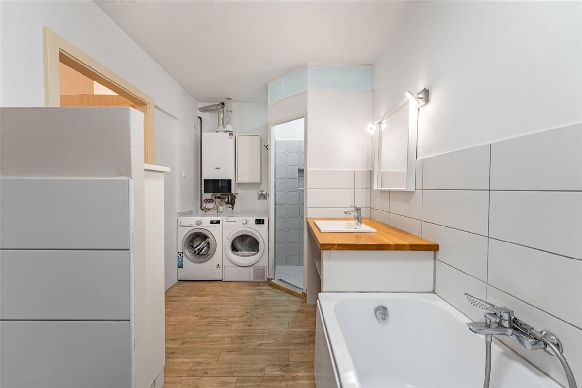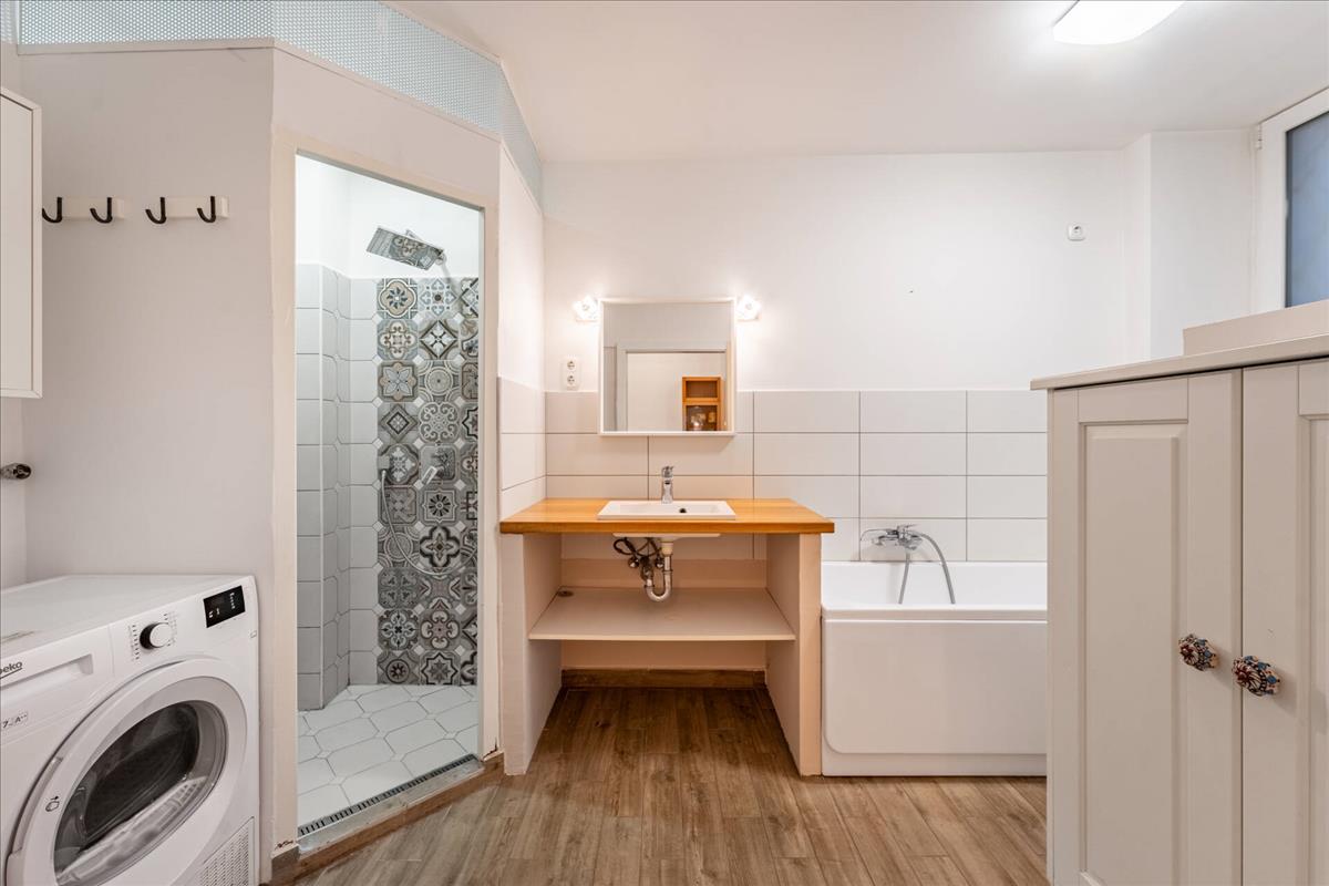 A tárolási lehetőség is biztosított, hiszen a a fürdőszoba felett egy galéria található, így a kiváncsi szemek elől elrejtve, kényelmesen lehet tárolni a nem mindennapi használatban lévő tárgyakat, értékeket.