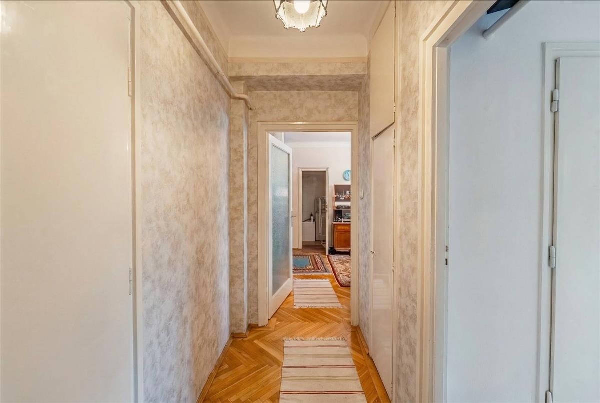 Mindkét helyiség nyugati tájolású, és kellemes, zöld, fás budai panorámára néz. a közlekedőről tovább haladva érkezünk a nappaliba, ahol szemben található a fürdőszoba, mellette pedig egy félig leválasztott dolgozórész kapott helyet, ami ideális otthoni munkához vagy tanulósaroknak. a nappaliból nyílik az erkély is, ahonnan igazán szép, zöld lombkoronás kilátás tárul elénk.