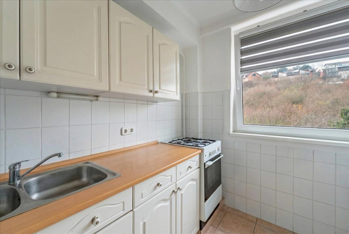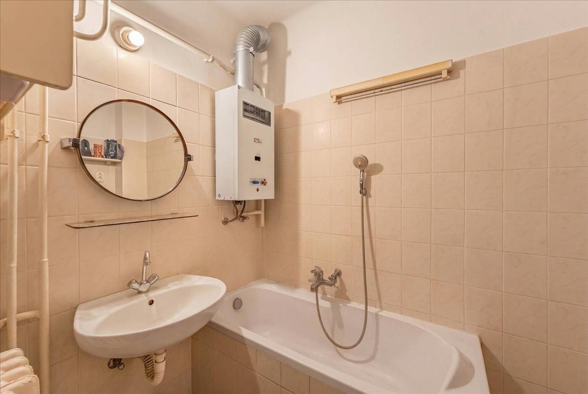 Az ingatlan egy rendezett, liftes társasház 5. emeletén található. a lakásba belépve előszobába érkezünk, balra külön mellékhelyiséggel. Jobbra egy rövid közlekedőn keresztül jutunk el a hálószobába és a konyhába, amelyek egymás mellett helyezkednek el.