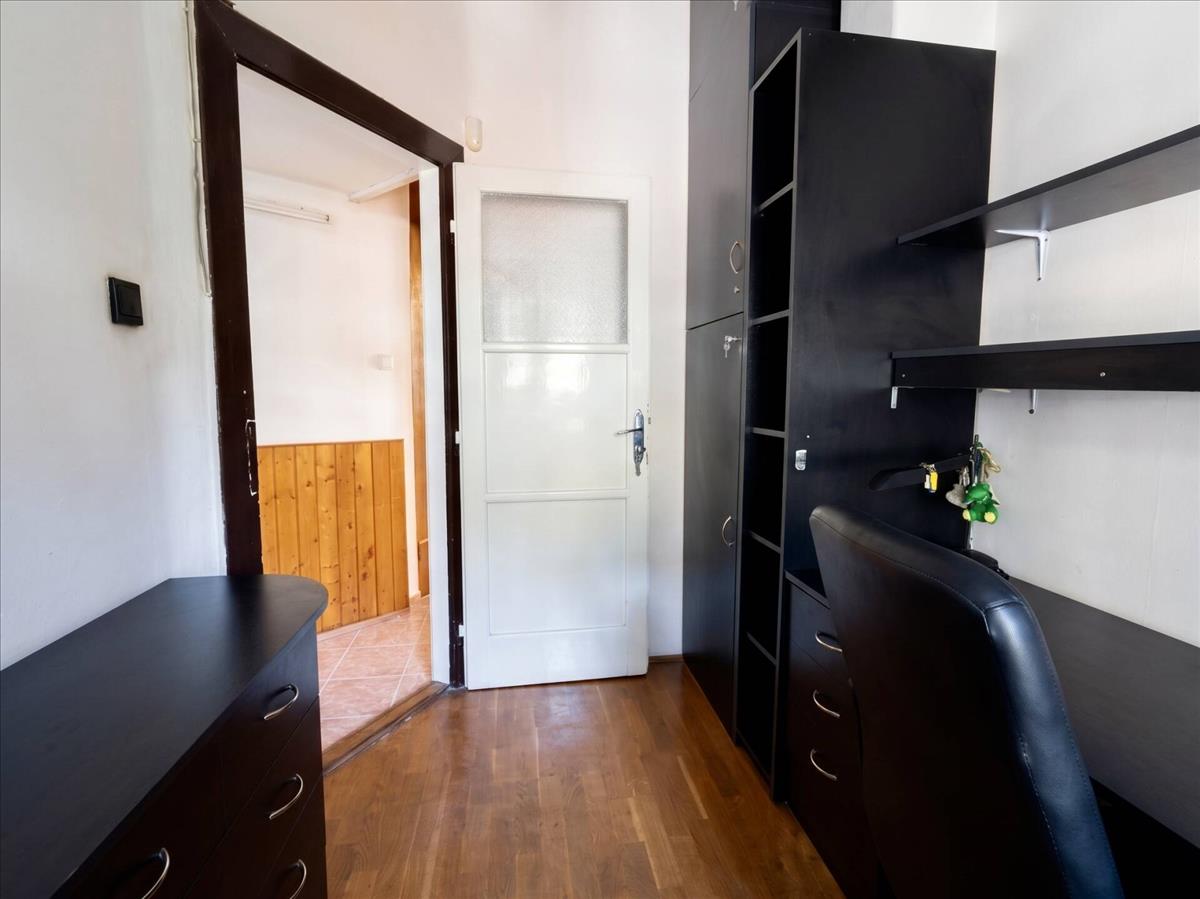Kilépve a hallba érjük el a félszobánkat, illetve mellette az első hálószobánkat, szembe pedig a zuhanyzós és egyben kádas fürdőszobánk kapott helyet.