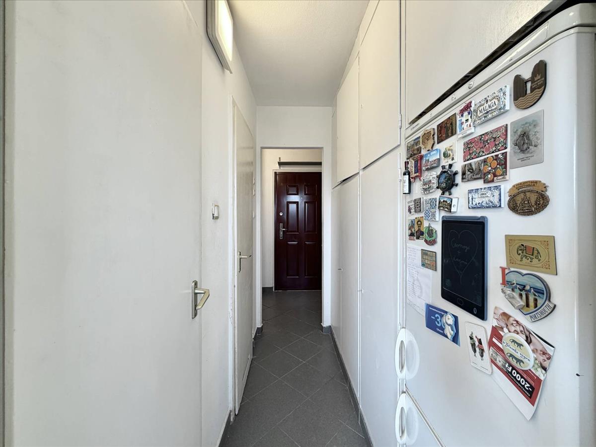 Az előtérből balra nyílik az egyik szoba, jobb-kéz felől az erkélykapcsolatos szoba, míg a konyhát, a fürdőszobát és a wc-t egy közlekedőn keresztül érhetjük el. Itt számos beépített szerkény is helyet kapott, ami sok pakolóhelyet rejt magában.
