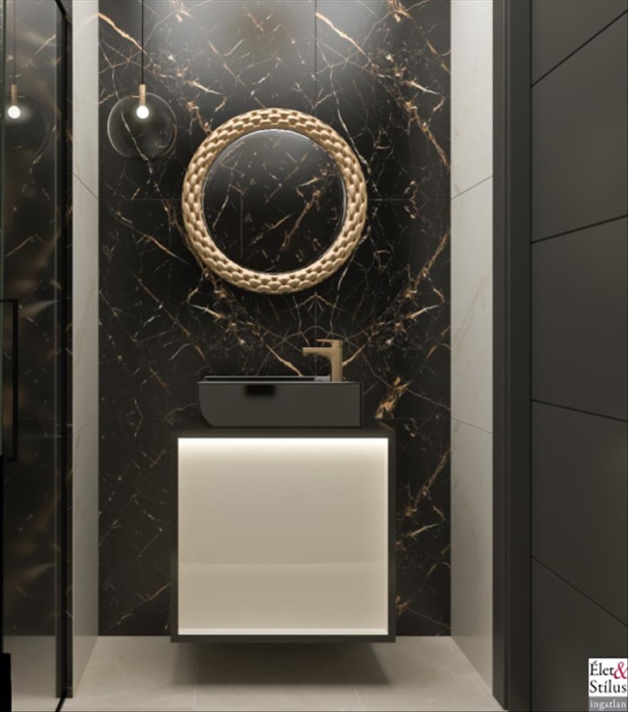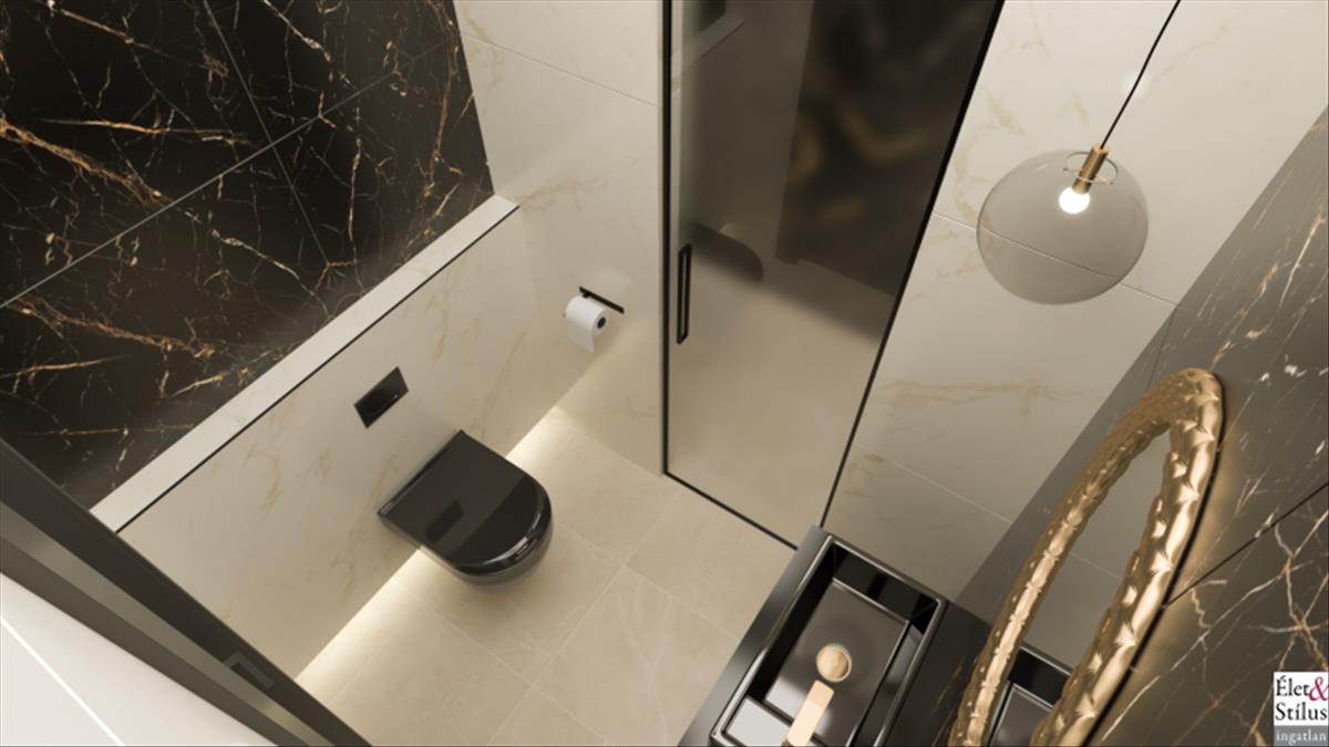 Alsó szintünkön, egy több mint 40 nm -es, nappali-konyha-étkező, egy zuhanyzóval, toalettel felszerelt fürdő és egy külön bejáratú szoba került kialakításra, amely akár vendégszobaként, akár dolgozószobaként is szolgálhat.