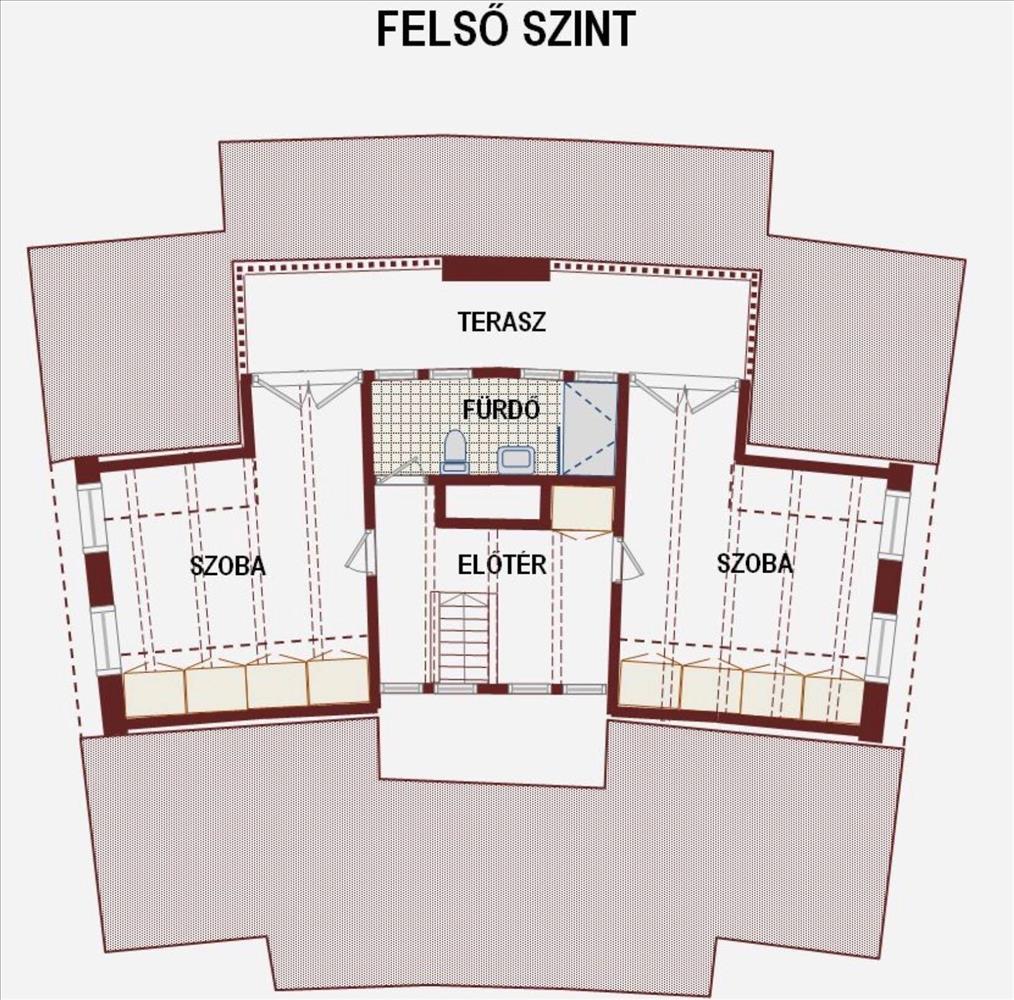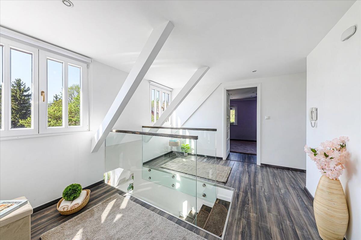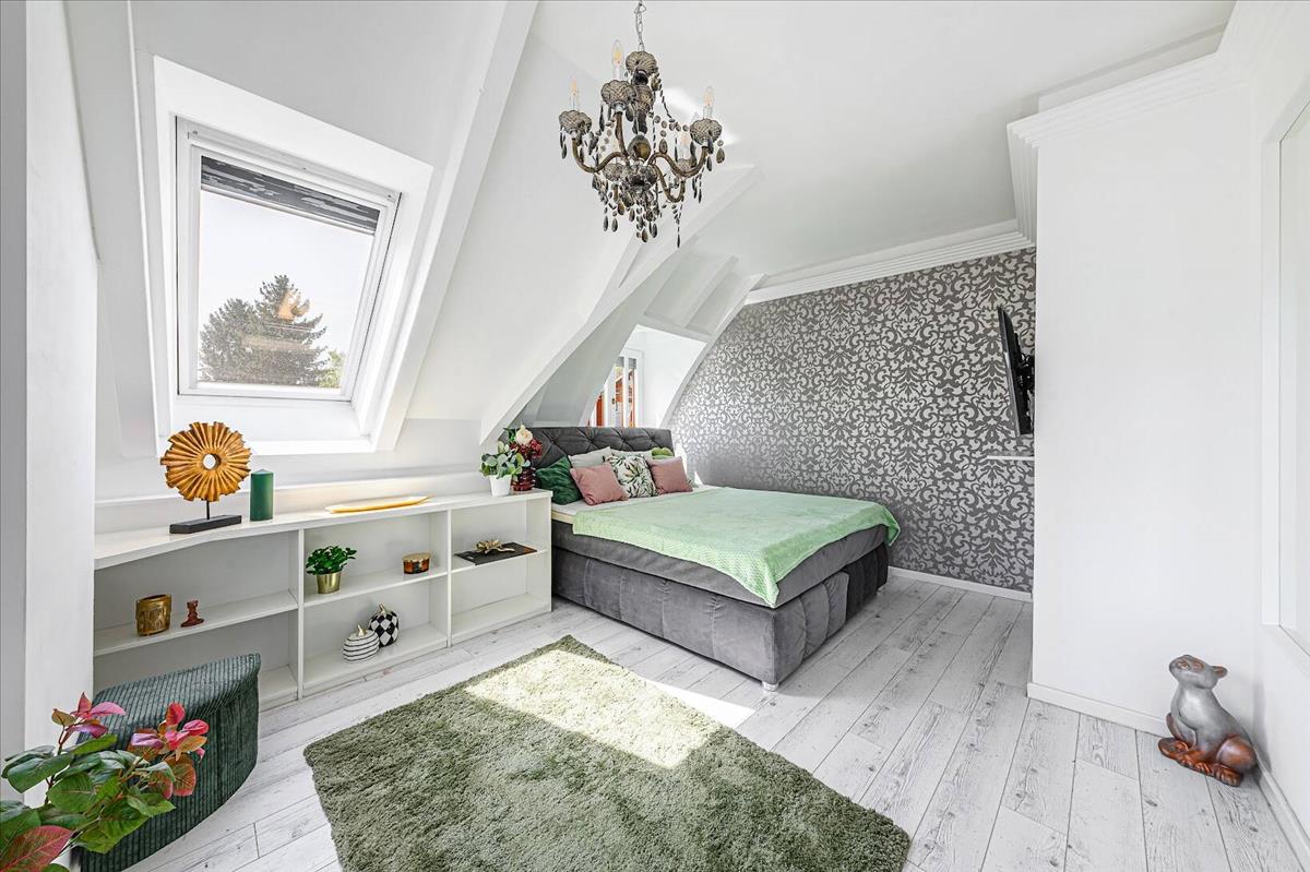 • Két szintes, átgondolt alaprajz (4 szoba + 1 félszoba) - egy tágas nappali, három kényelmes hálószoba, külön gardróbszoba, jól elkülönülő életterek