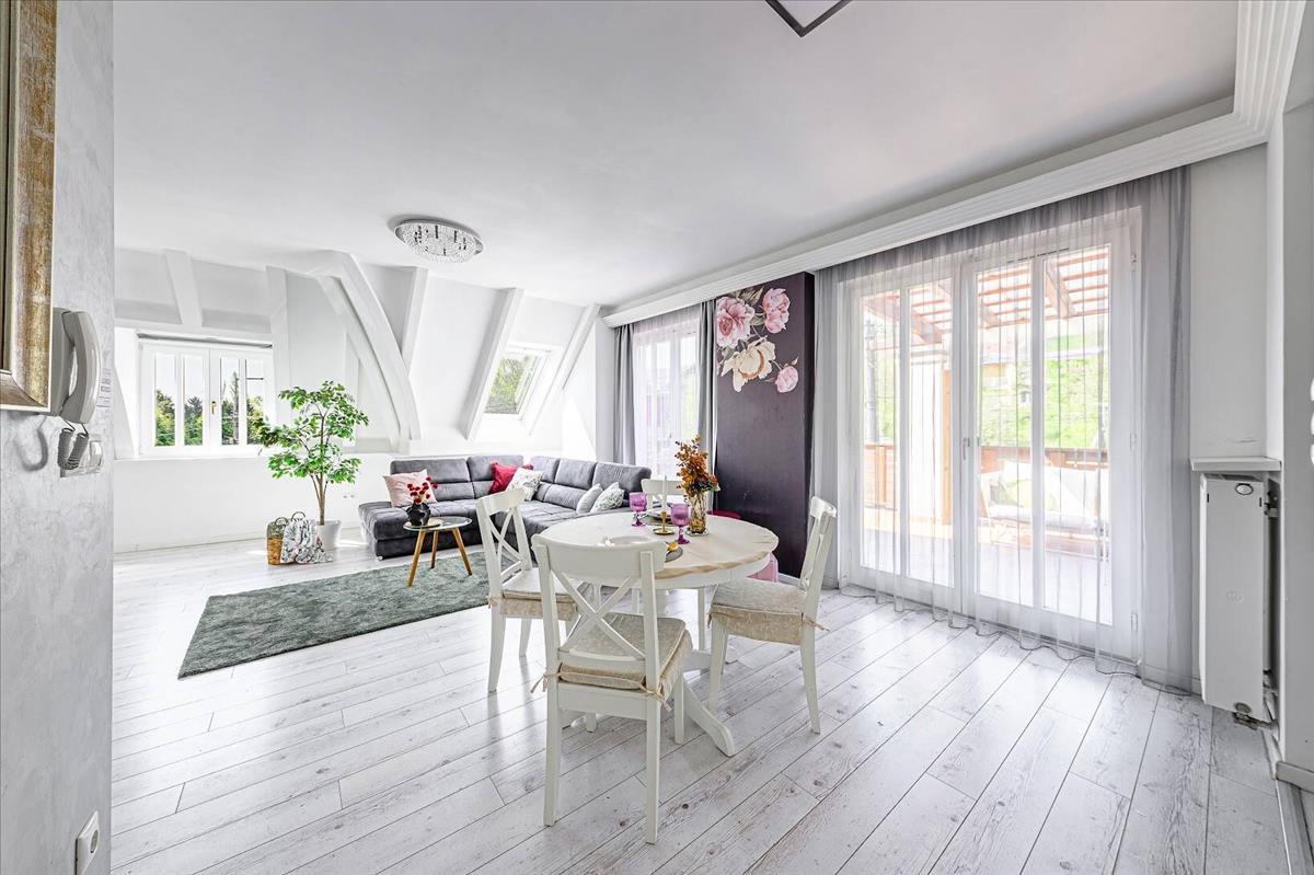 Az ingatlan folyamatosan karbantartott, szigetelt, cserépfedésű épületben található, ahol a természet közelsége és a modern kényelmi megoldások harmonikus egységet alkotnak. a lakás különlegessége, hogy gyakorlatilag nincsenek közvetlen falszomszédok, így a privát élettér és a zavartalan nyugalom garantált.