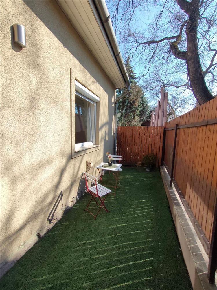 A házhoz tartozó saját használatú telekrész a valóságban kb. 100 M², melyből mintegy 50 m² hangulatos saját udvarként használható.