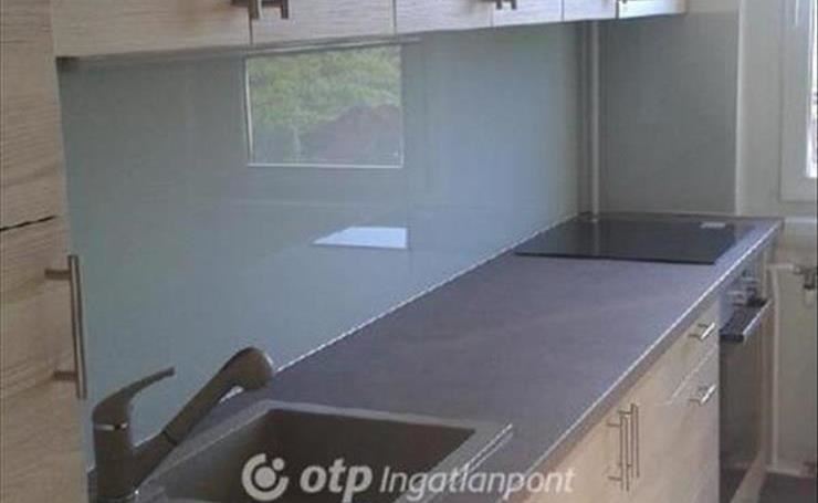 A stílusos, beépített konyhabútor üveg hátlappal, beépített sütővel, indukciós főzőlappal és gránit mosogatóval felszerelve elegáns és időtálló megoldást kínál, amely a főzés szerelmeseinek is örömöt jelenthet.