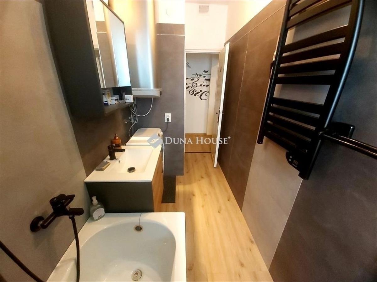 Felújított fürdőszoba új burkolatokkal, káddal, szaniterekkel, új 100 literes, eco villanybojler. a wc és a fürdő külön helyiségben található. Saját, felújított pince (száraz, csempézett, polcozott).