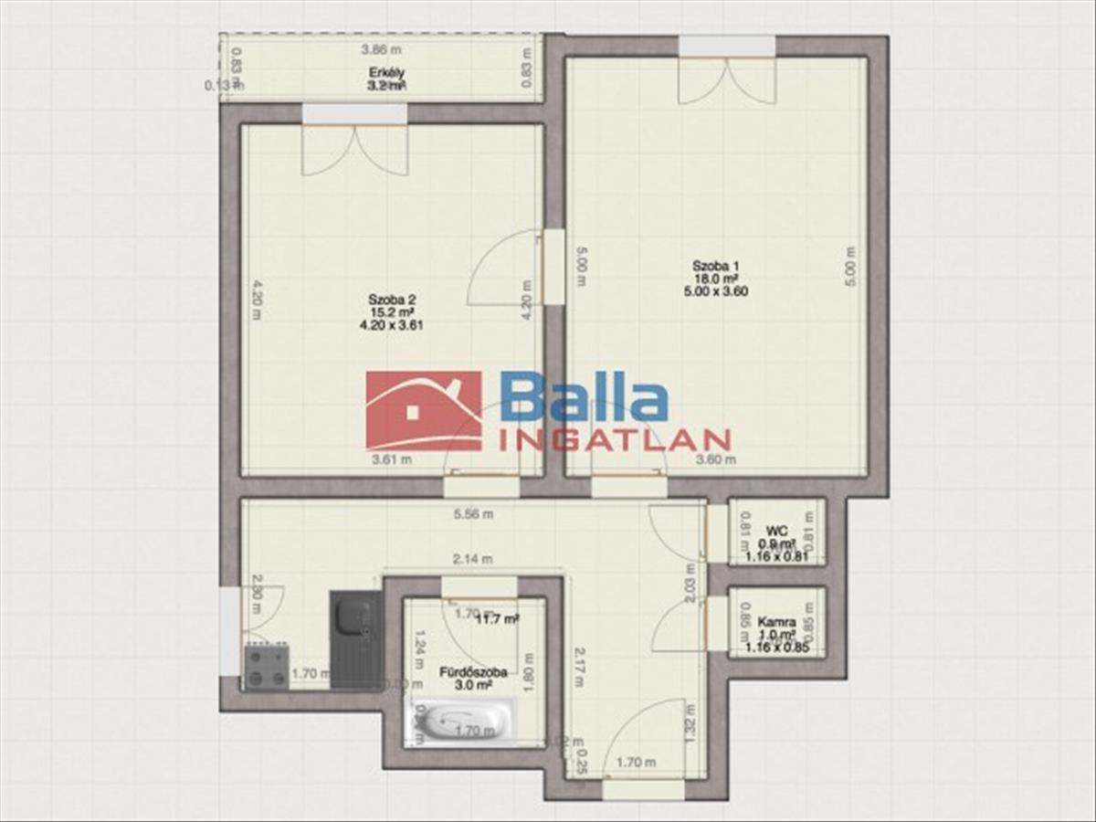 - Elrendezés: Előszoba, 2 tágas szoba, konyha, fürdőszoba és egy praktikus kamra.
