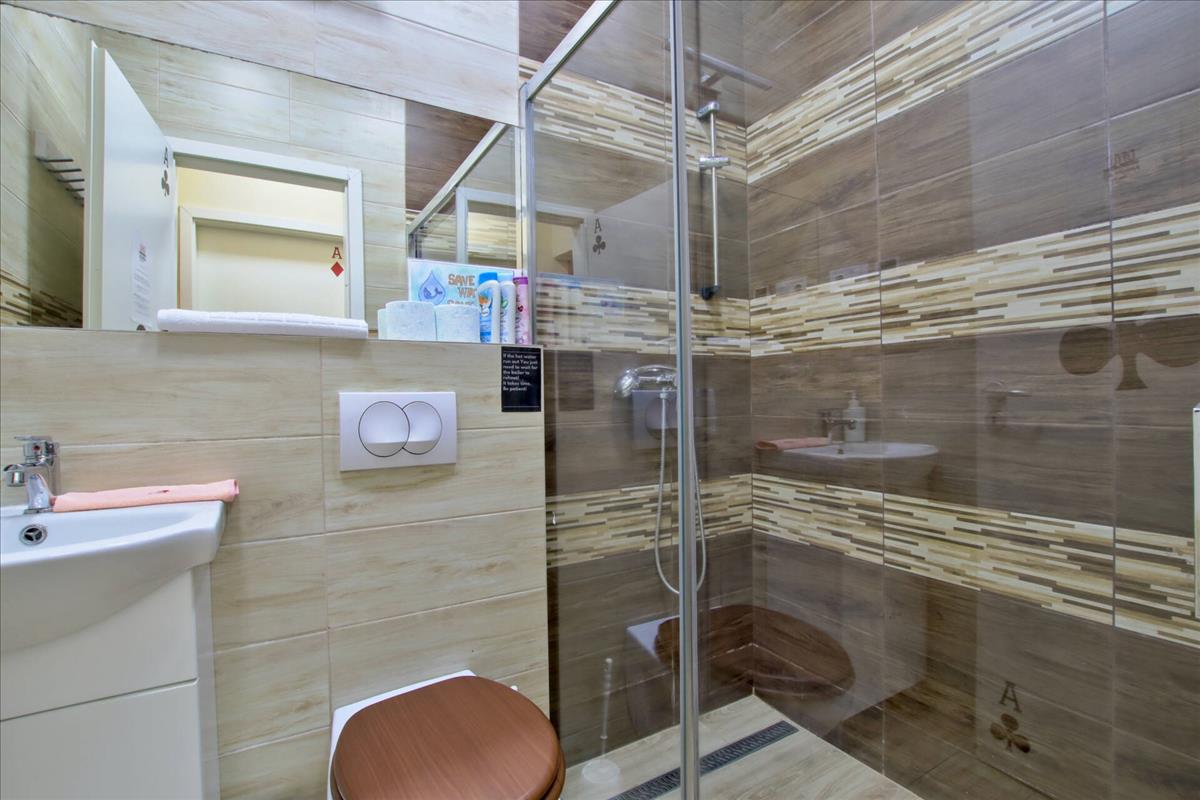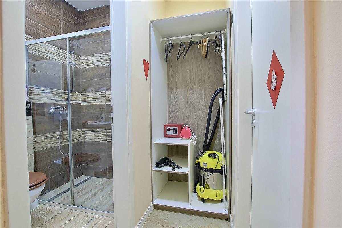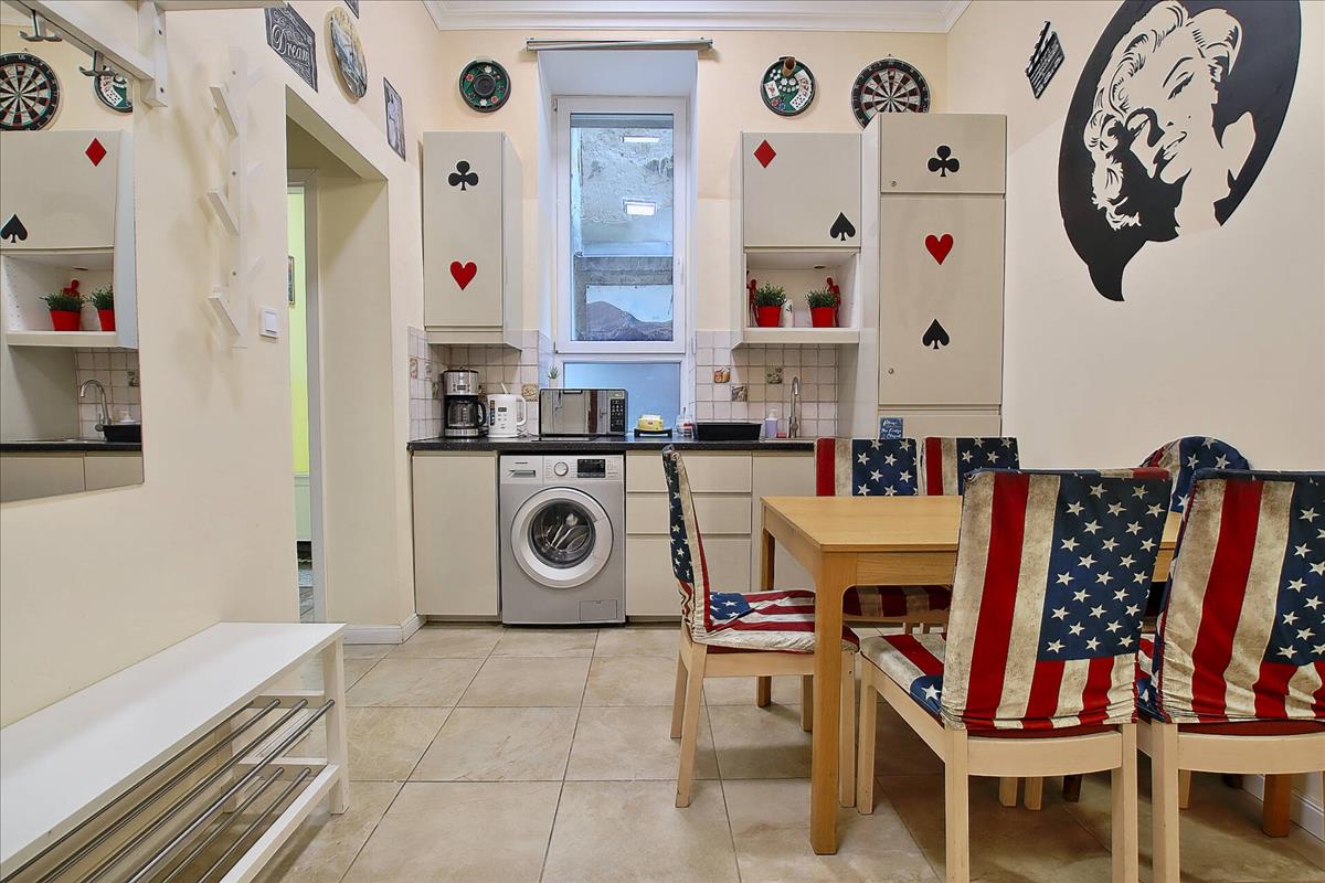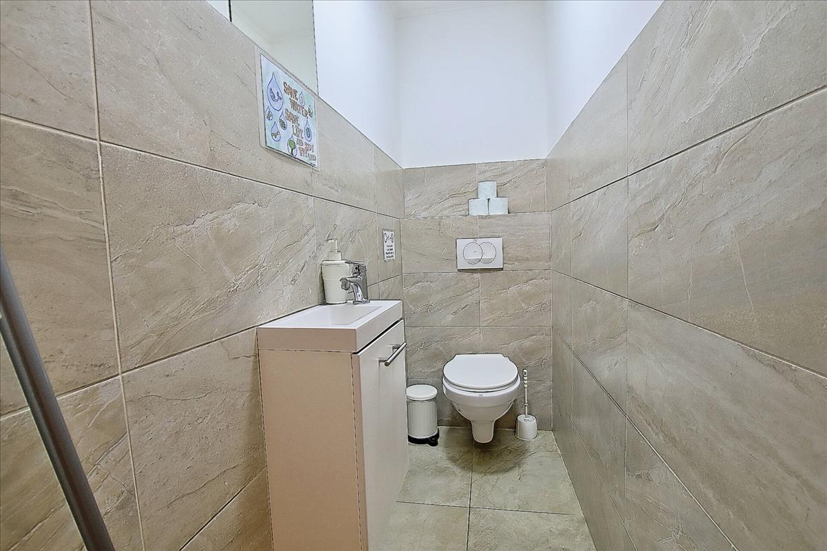 Belépve az étkezős konyha fogad, ami egy létgérben, mégis részben elkülönülten helyezkedik el a nappalival. Az udvari nézetű nappaliból nyílik egy hálószoba, ami ideális, csendes helyet biztosít a pihenésre. a konyhából egy rovid összekötő folyosón érkezünk a másik hálóba és a vele szemközti zuhanyzós fürdőbe. a lakásban egy további tágas vendég mosdó is található. a lakás teljesen felszerelt, gépesített konyhával és a képeken látható berendezési tárgyakkal együtt eladó.