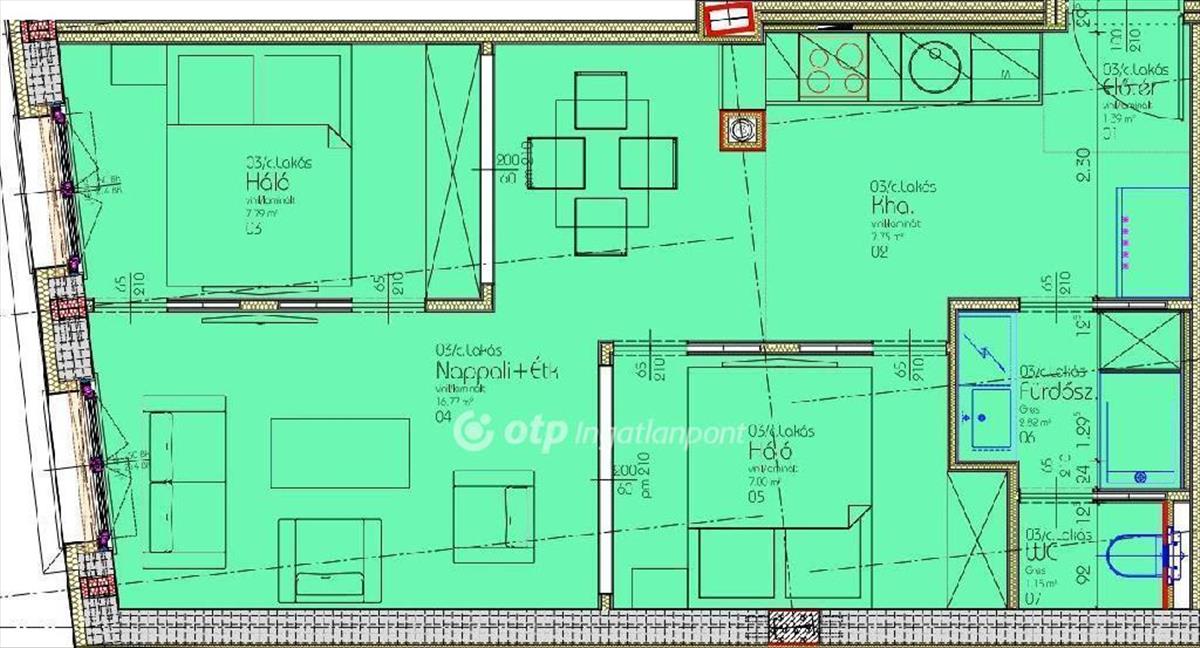 Eladó egy 48 nm-es, 1+2 félszobás, új építésű lakás a társasház harmadik emeletén.