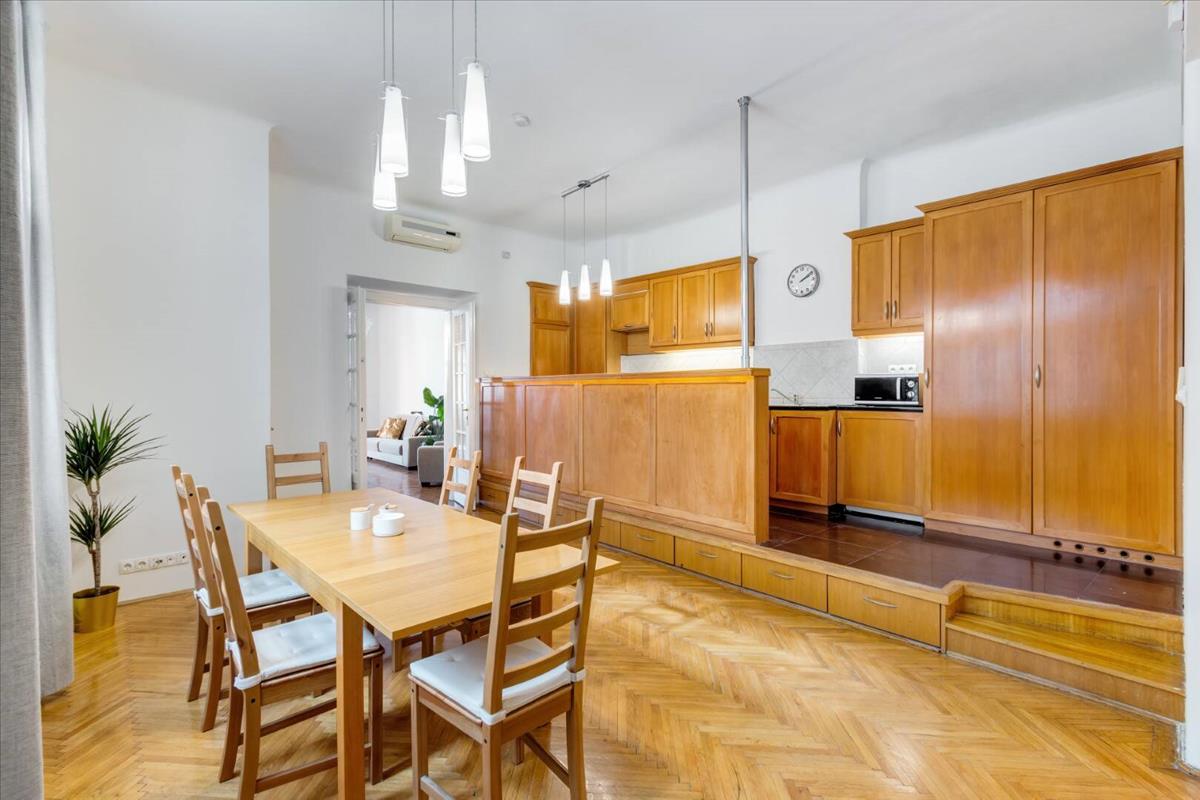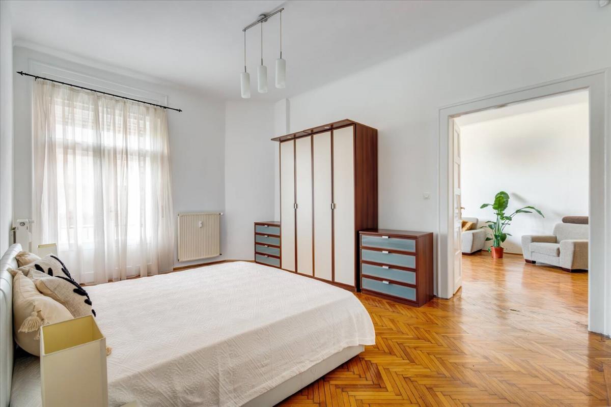 A lakás egyik legnagyobb értéke a nagy belmagasság és a világos, egymásból nyíló terek, amelyeket a gyönyörű halszálkás parketta és a nagy ablakok tesznek igazán karakteressé. a nappali és a szobák mérete lehetőséget ad egy kényelmes, elegáns élettér kialakítására, amely mindennapi használatra és vendégfogadásra egyaránt ideális.
