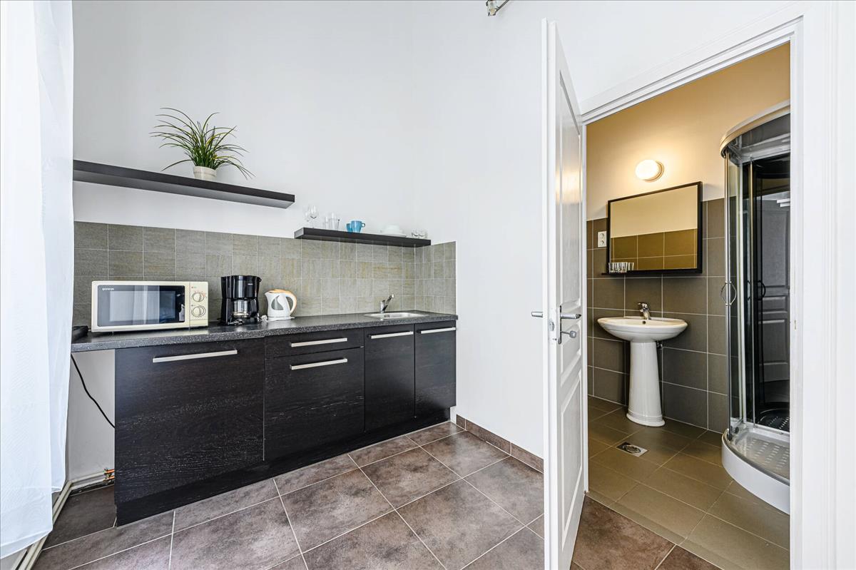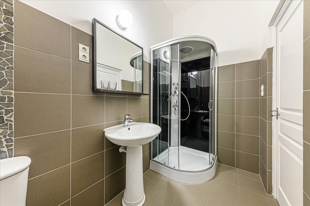 A 71 m²-es, 4, 05 méteres belmagasságú ingatlan jelenleg 2 külön apartmanként működik, melyekhez két külön bejárat tartozik a folyosóról. Mindkét lakrész saját konyhával, külön fürdőszobával és önálló szobával rendelkezik, így teljes értékű, elszeparált életteret biztosítanak.