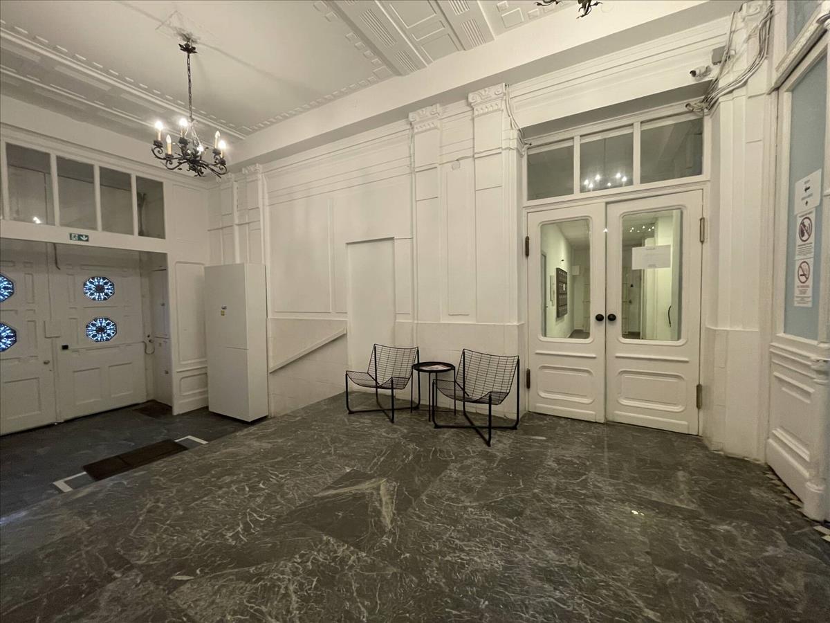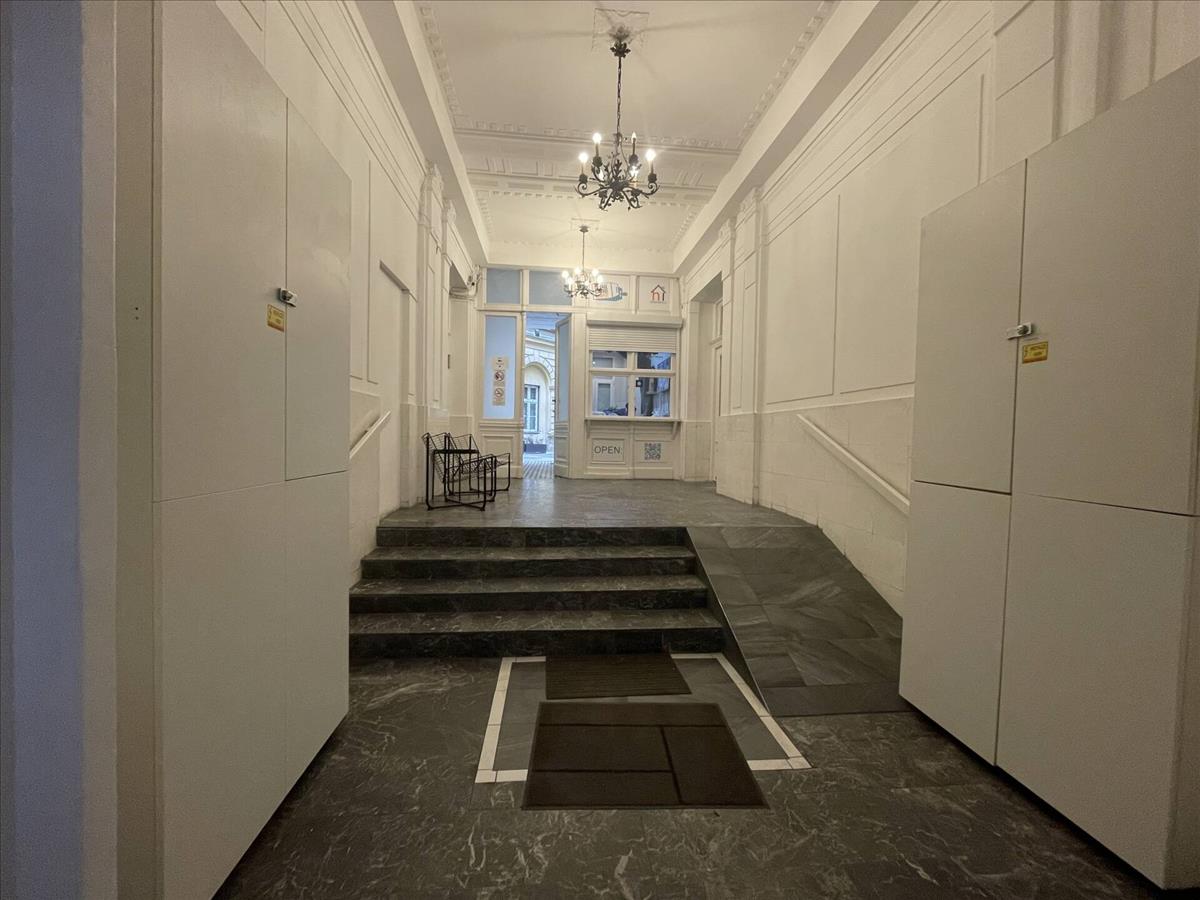 Az ingatlan egy 1950 előtt épült, patinás, téglaépület második emeletén helyezkedik el, egy liftes, háromszintes házban. a lakás udvari fekvésű, így a belvárosi elhelyezkedés ellenére is kellemesen csendes.