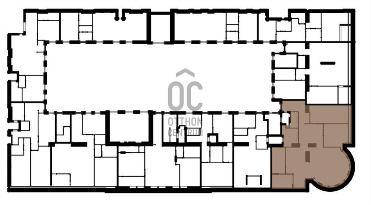 Igazi ritkaságnak számító lakás, mely a Jókai tér irányába néző újjáépült toronyban kerül kialakításra. Az előtérből közelíthető meg a hall, ahonnan nyílik a két szoba, a konyha-étkező és az íves nappali. Két vizesblokk is kialakításra kerül, egyik fürdőkáddal. a konyha-étkezőből nyílik egy kisebb szoba, mely dolgozószobaként vagy vendégszobaként is funkcionálhat. a télikert megközelíthető a kisebb hálószobából és az étkezőből is.