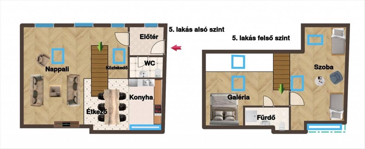 5-ös lakás: 67, 2 m² nappali + 2 szoba