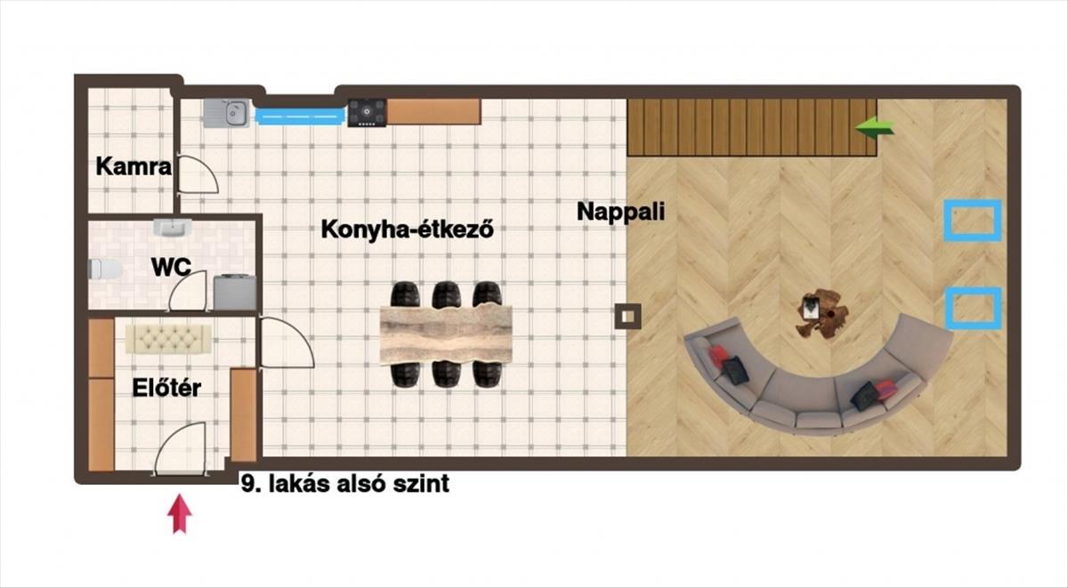 9-es lakás: 87, 5 m² nappali + 1 szoba