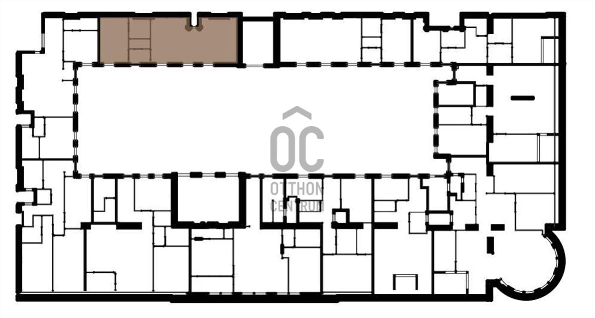 A lakás Petschacher Gusztáv tervei alapján készült épület 5. emeletén helyezkedik el, kétszintes, ablakai a csendes belső udvarra néznek.