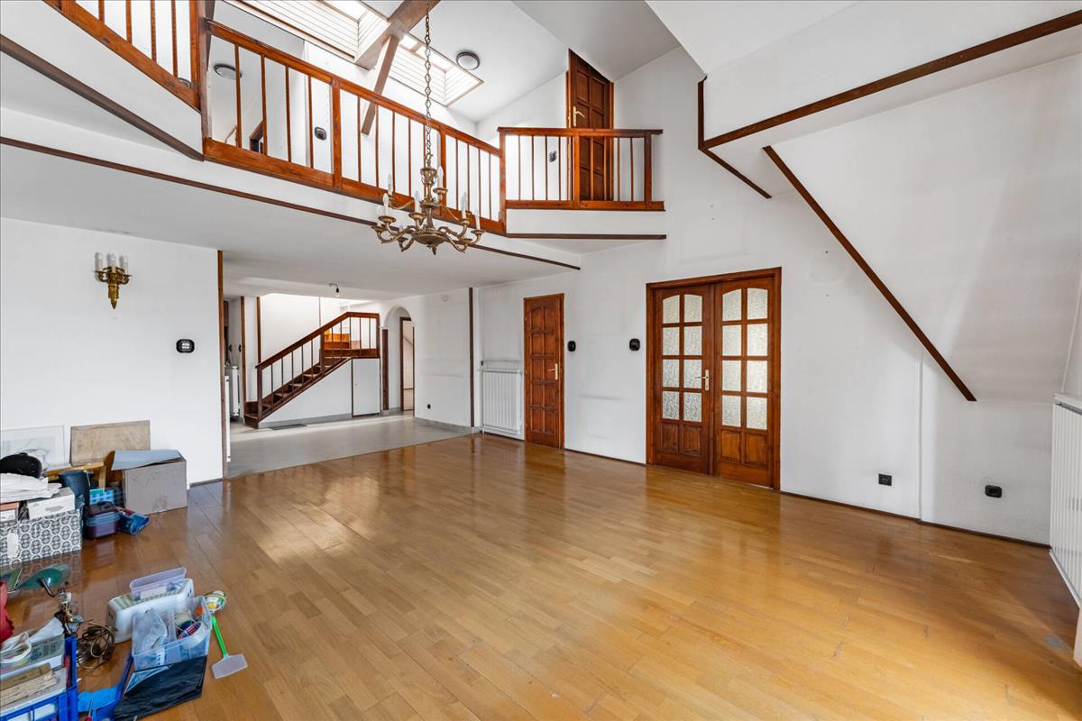 A galériás, dupla belmagasságú központi nappali rendkívül világos, az elosztás pedig sokoldalúan használható, így többgenerációs otthonként, elegáns irodaként vagy exkluzív befektetésként is ideális.