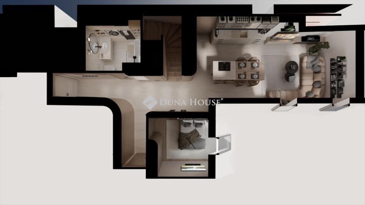 Ez a lakás ideális választás azoknak, akik egy világos, tágas és jól tagolt tetőtéri otthonra vágynak a belváros szívében, ahol a funkcionalitás és a stílus kéz a kézben jár.