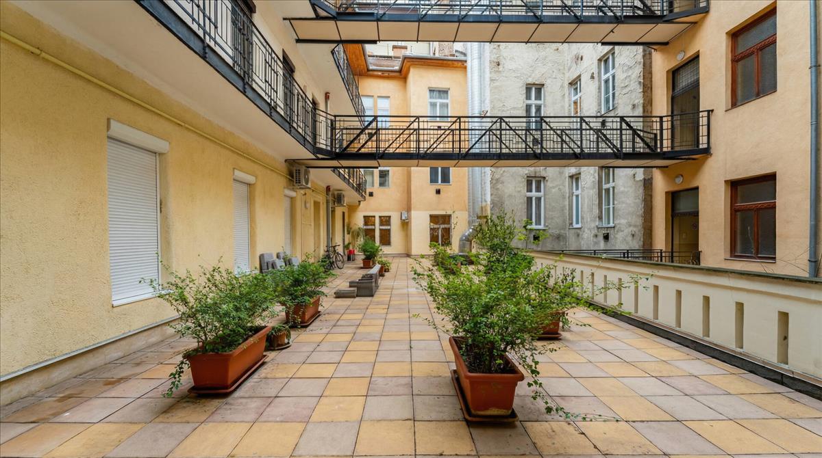 Udvari tájolásának köszönhetően csendes és nyugodt, miközben pár lépésre van a belváros lüktetésétől. A Régi Broadway közelsége nemcsak presztízst, hanem hosszú távon is stabil értéket jelent.