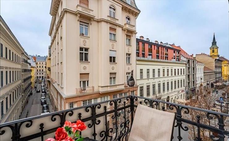 Az utcára néző erkély kellemes városi panorámát nyújt, kilátással az Andrássy úti W Budapest Hotel irányába és a Vasvári Pál utca teljes hosszára.
