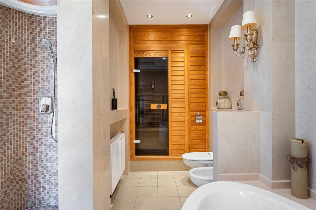 * a főfürdő szaunával és masszázskáddal felszerelt,