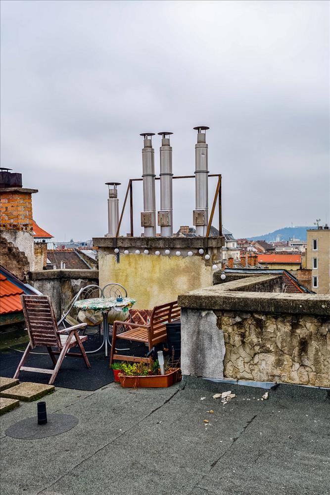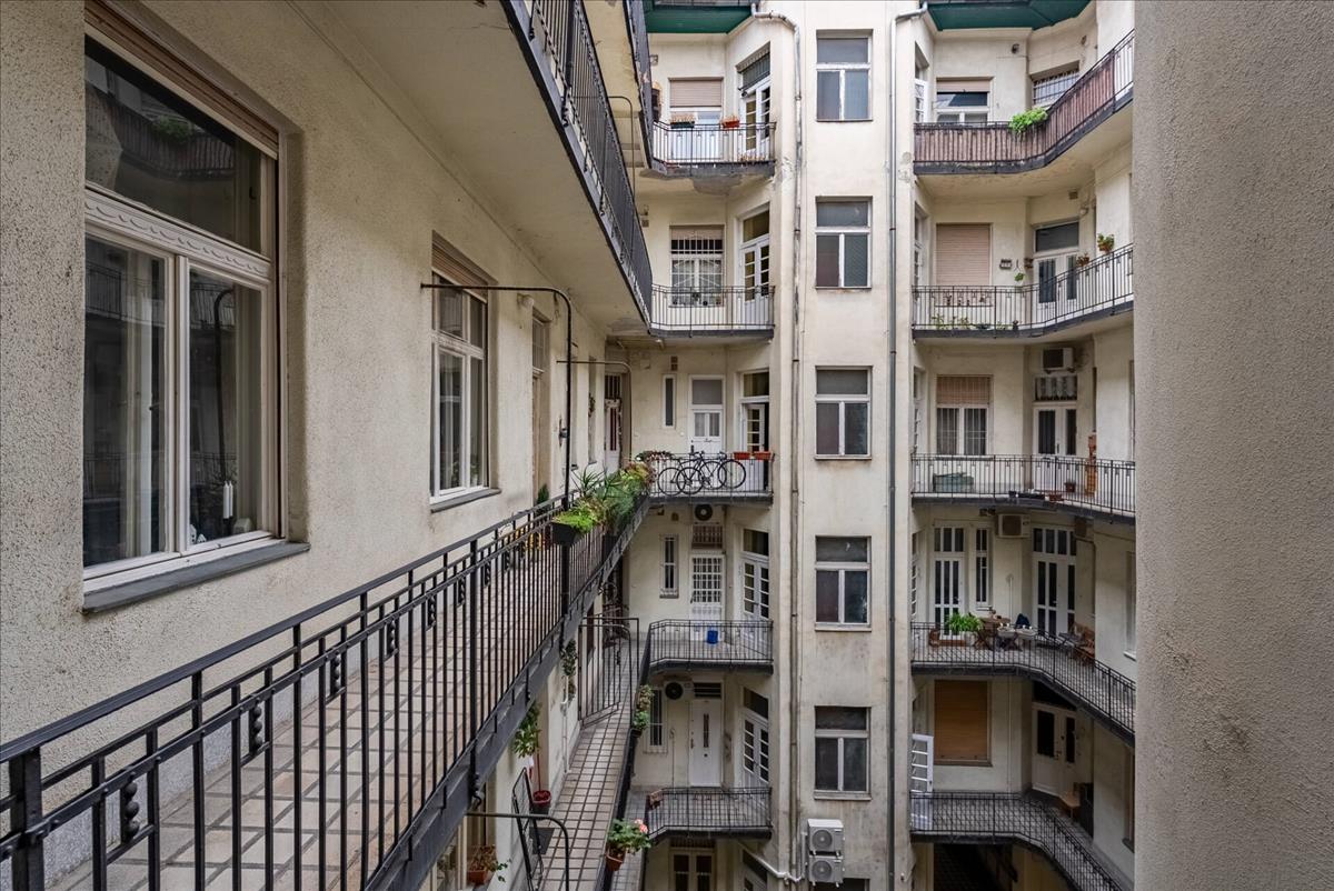 A lakás egy rendezett, jó állapotú, klasszikus belvárosi társasházban helyezkedik el, kulturált lakóközösséggel és karbantartott közös terekkel.