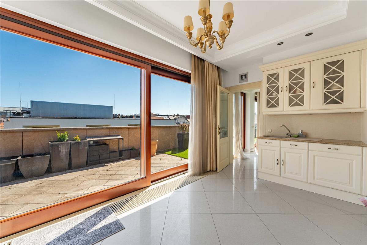 Ez a kivételes adottságokkal rendelkező otthon a társasház legfelső szintjén helyezkedik el, igazi penthouse hangulattal.