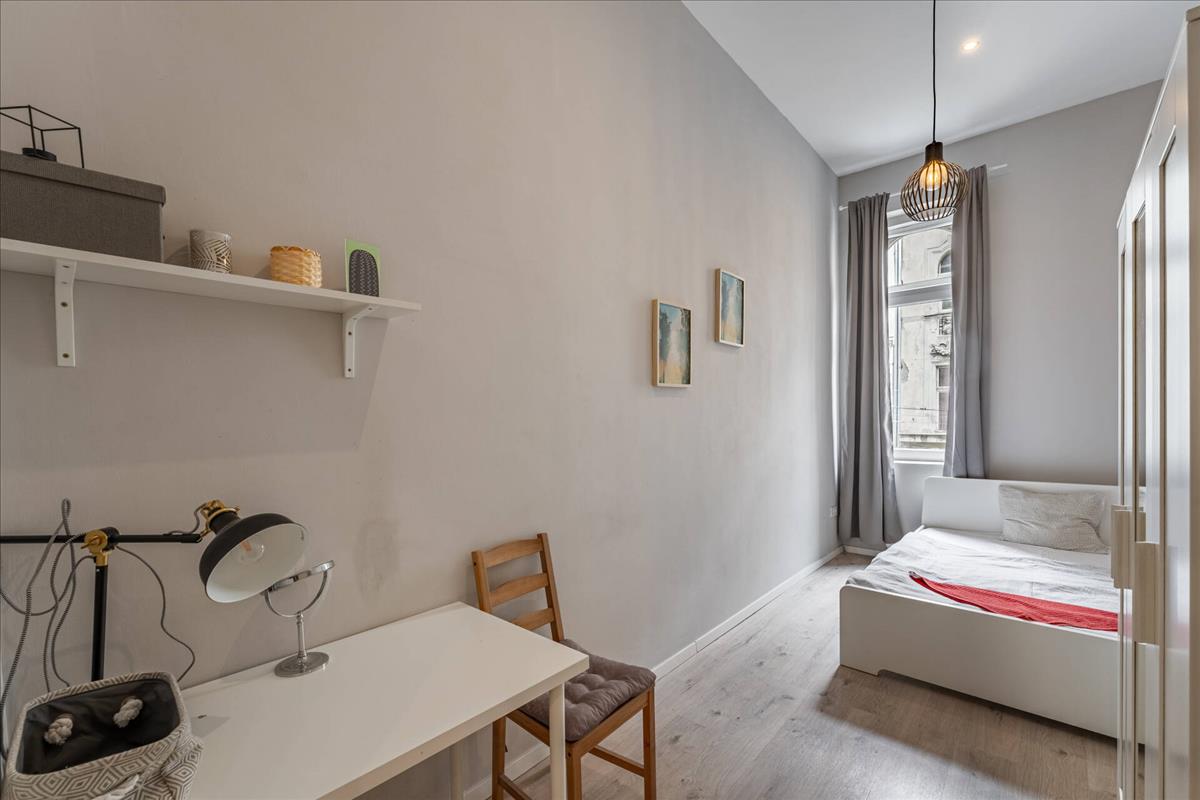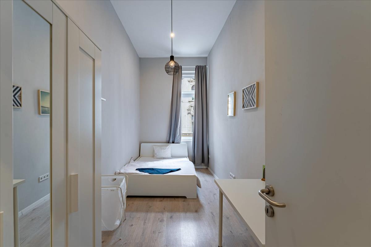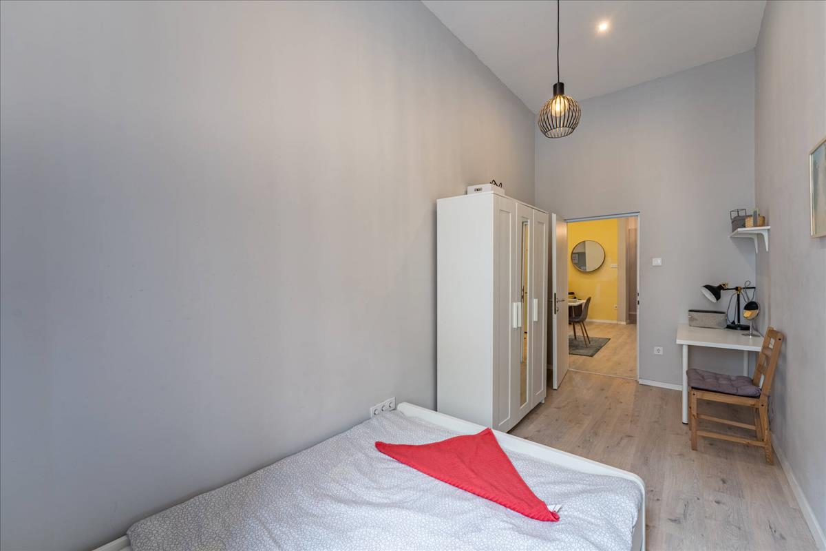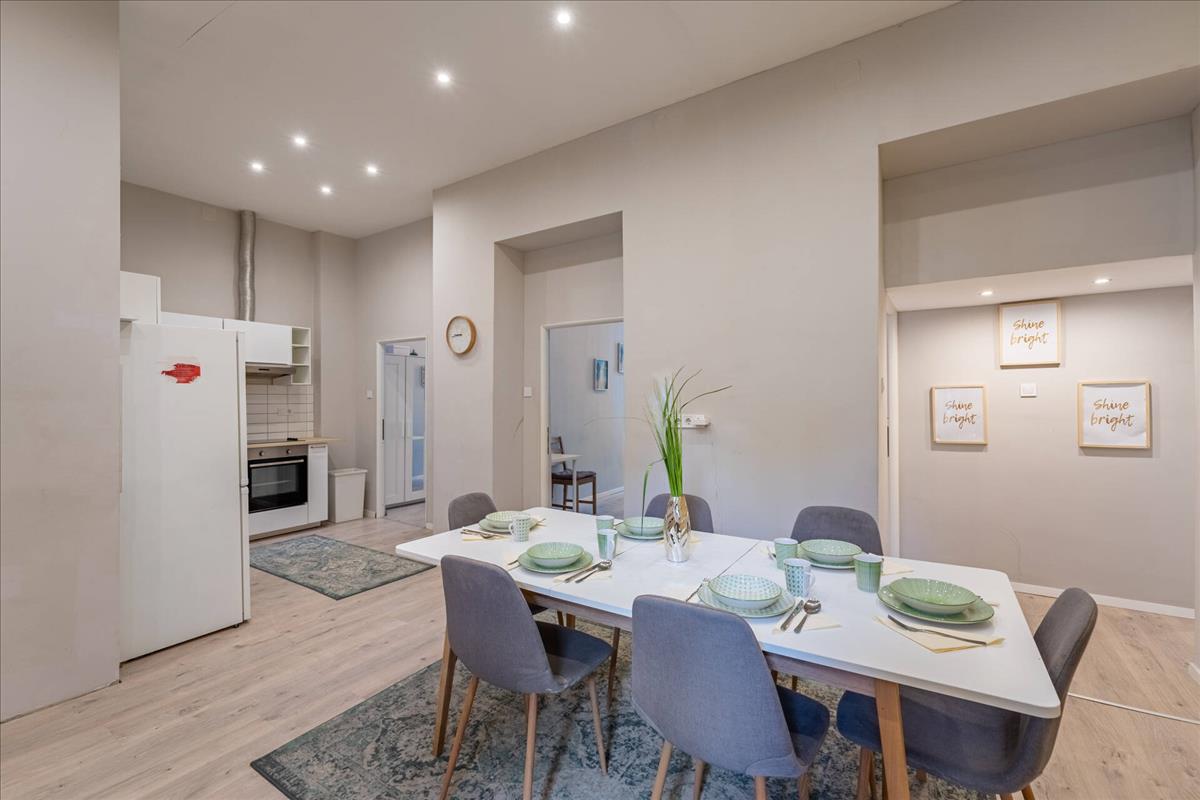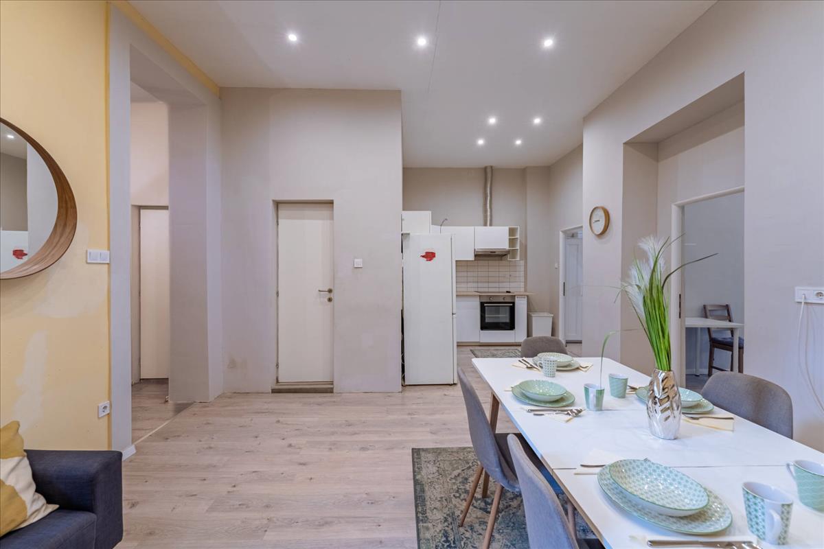 Megvételre kínálunk Budapest VII. kerületében, a Keleti Pályaudvar közvetlen közelében egy 1. emeleti, utcai nézetű, teljes körűen felújított, 99 m²-es ingatlant. a lakás jelenlegi kialakítása 5 hálószobából, amerikai konyhás nappaliból és 3 fürdőszobából áll, így kiváló lehetőséget kínál mind befektetési, mind többgenerációs vagy nagyobb családi használatra.