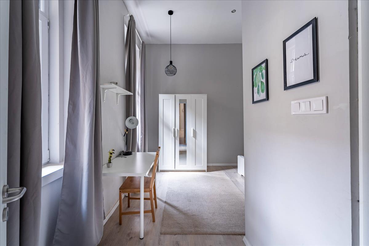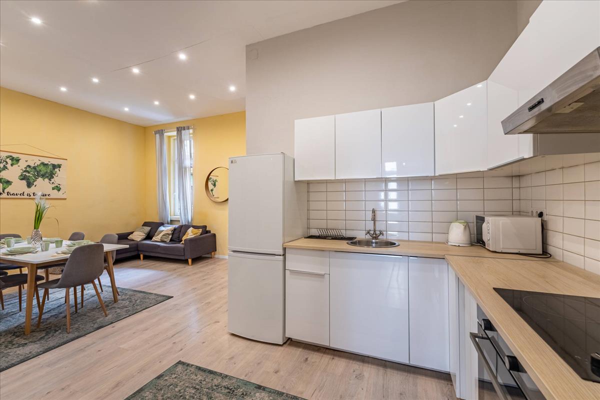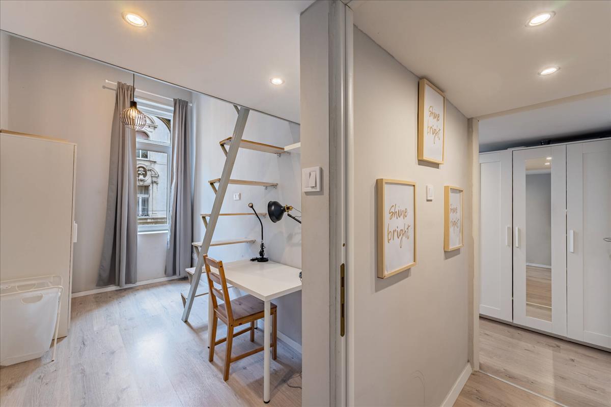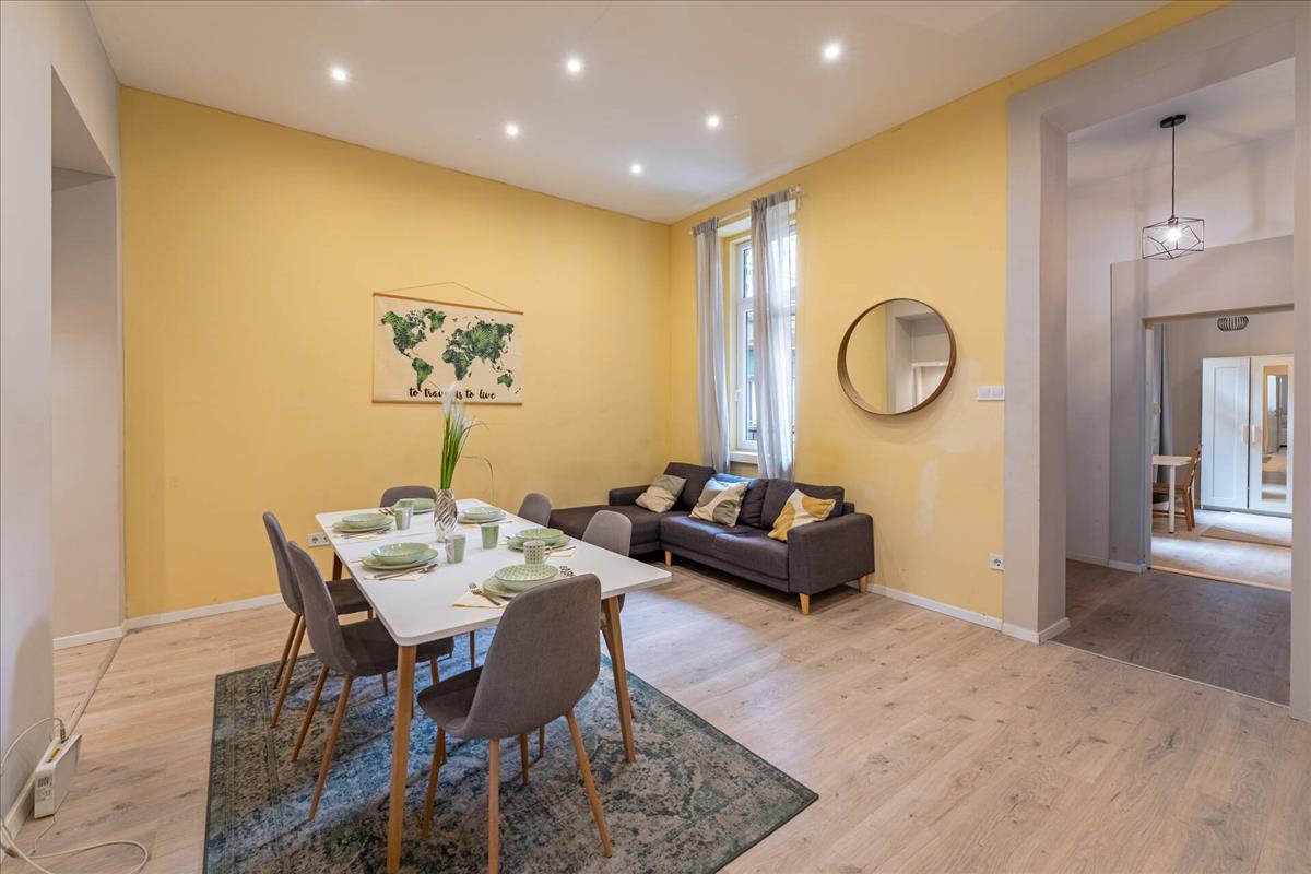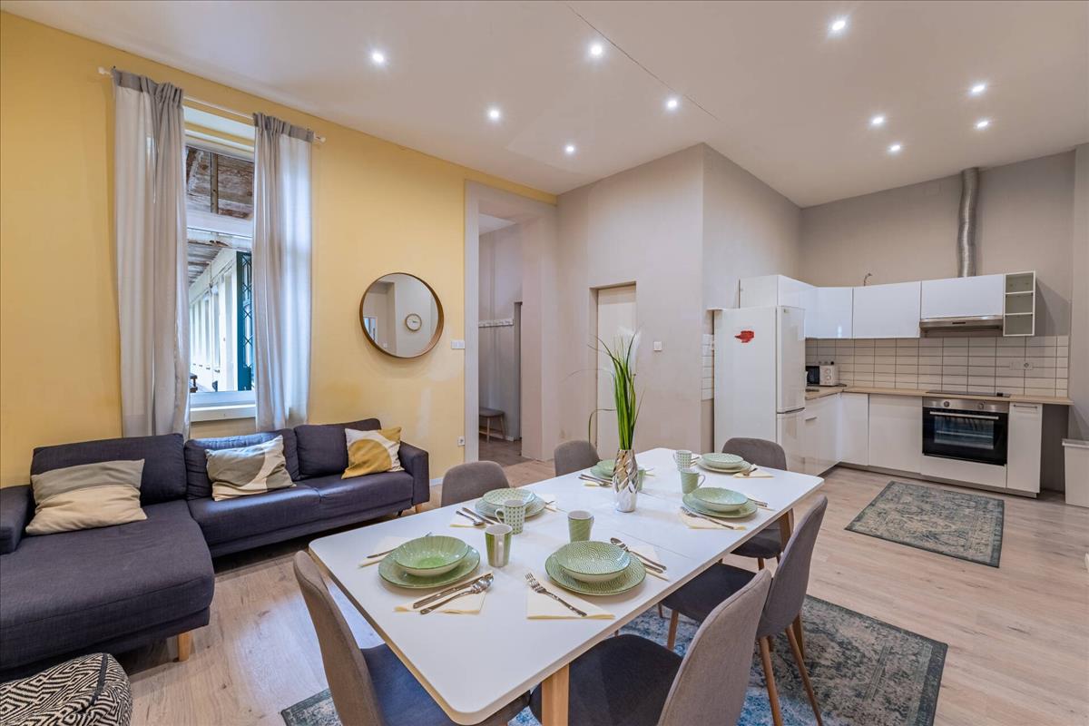 A felújítás során a lakás modern, kényelmes kialakítást kapott, miközben megőrizte a klasszikus belvárosi lakások hangulatát. Az utcai nézetnek és az emeleti elhelyezkedésnek köszönhetően a lakás kellemesen világos.