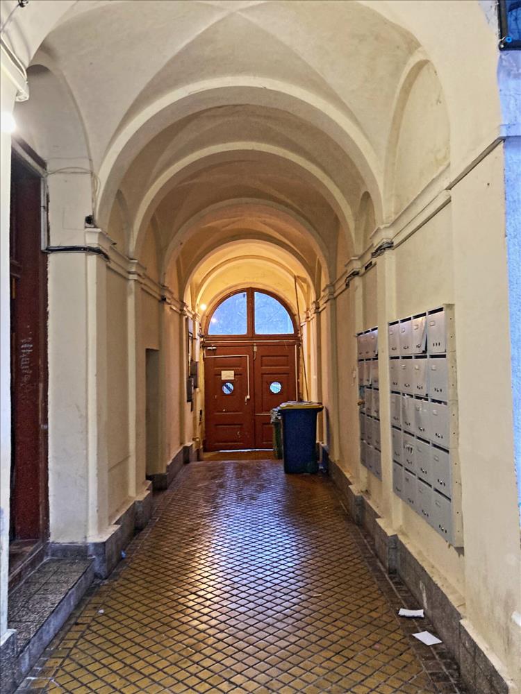 A lakás egy két emeletes, 1900-as évek elején épített, klasszikus polgári ház földszintjén helyezkedik el. a ház homlokzata jó állapotú, a bejárati folyosót a közelmúltban újították fel, a belső udvar azonban még nem lett renoválva. a kőrfolyosós ház belső udvarán zöld növények, hangulatos kiülők és kerékpártárolási lehetőség kapott helyet.