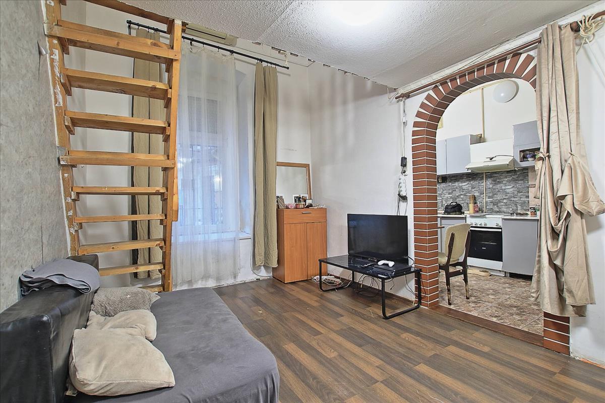 Eladó egy 24 m2-es, földszinti, udvarra néző, galériás átlagos állapotú lakás a Kálvária téren.