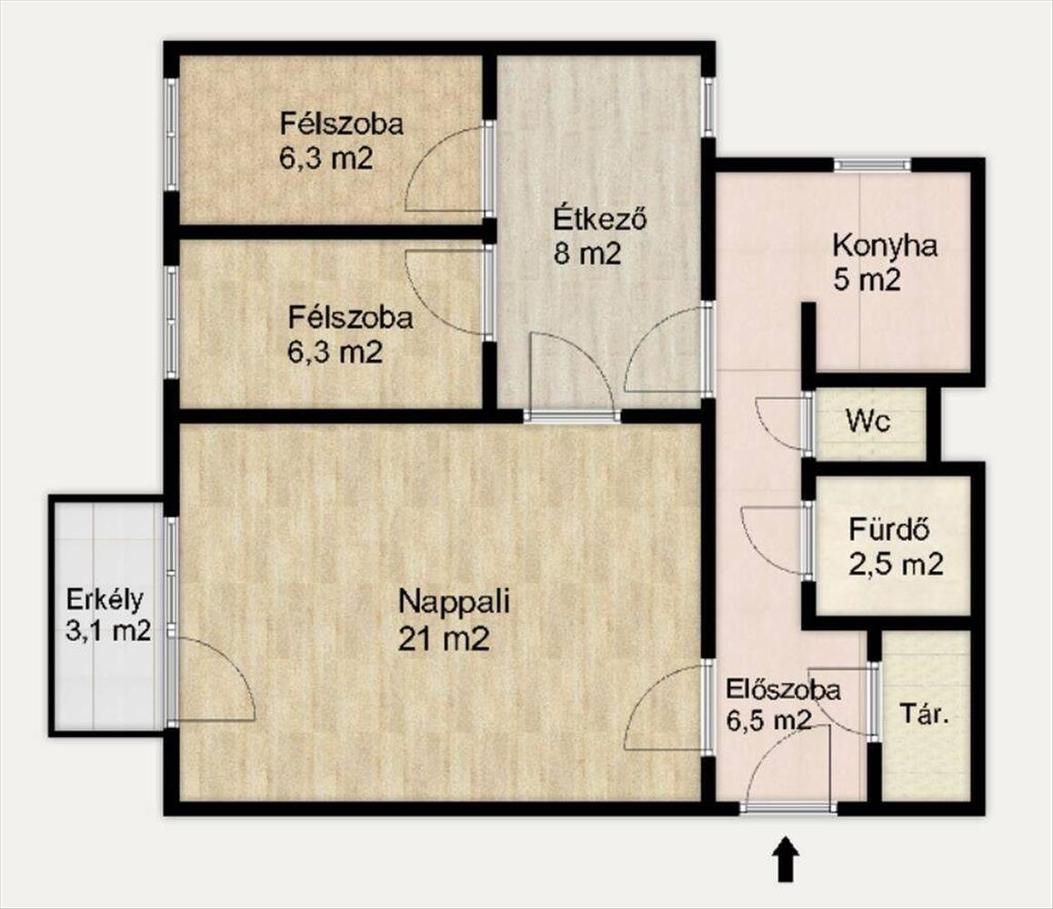 - Alapterület:58 m2