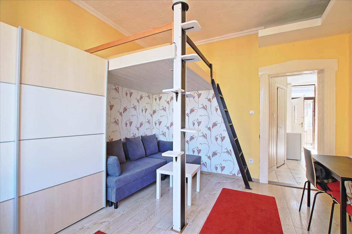 Eladó egy 27 m2-es, harmadik emeleti, jó állapotú, egy szobás, galériás, zöld udvarra néző lakás a Mátyás tér mellett a Szerdahelyi utcában, remek közlekedésű, jól ellátott helyen.