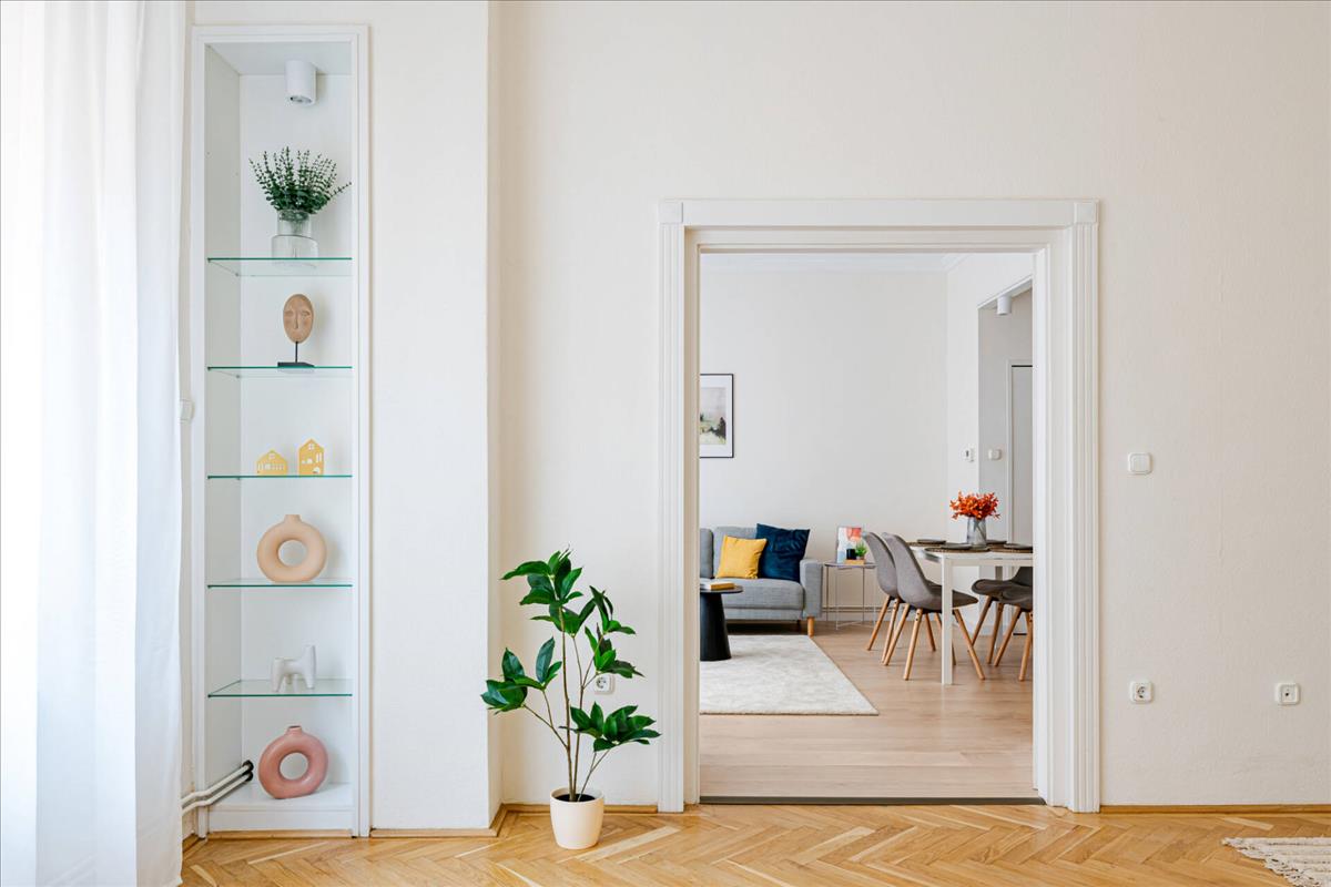 VIII. Palotanegyedben, a Baross utca elején, közel a Kálvin térhez eladó egy Bauhaus stílusban épült, liftes társasház 1. emeletén egy teljeskörűen felújított, igazán otthonos, nagyon világos lakás.