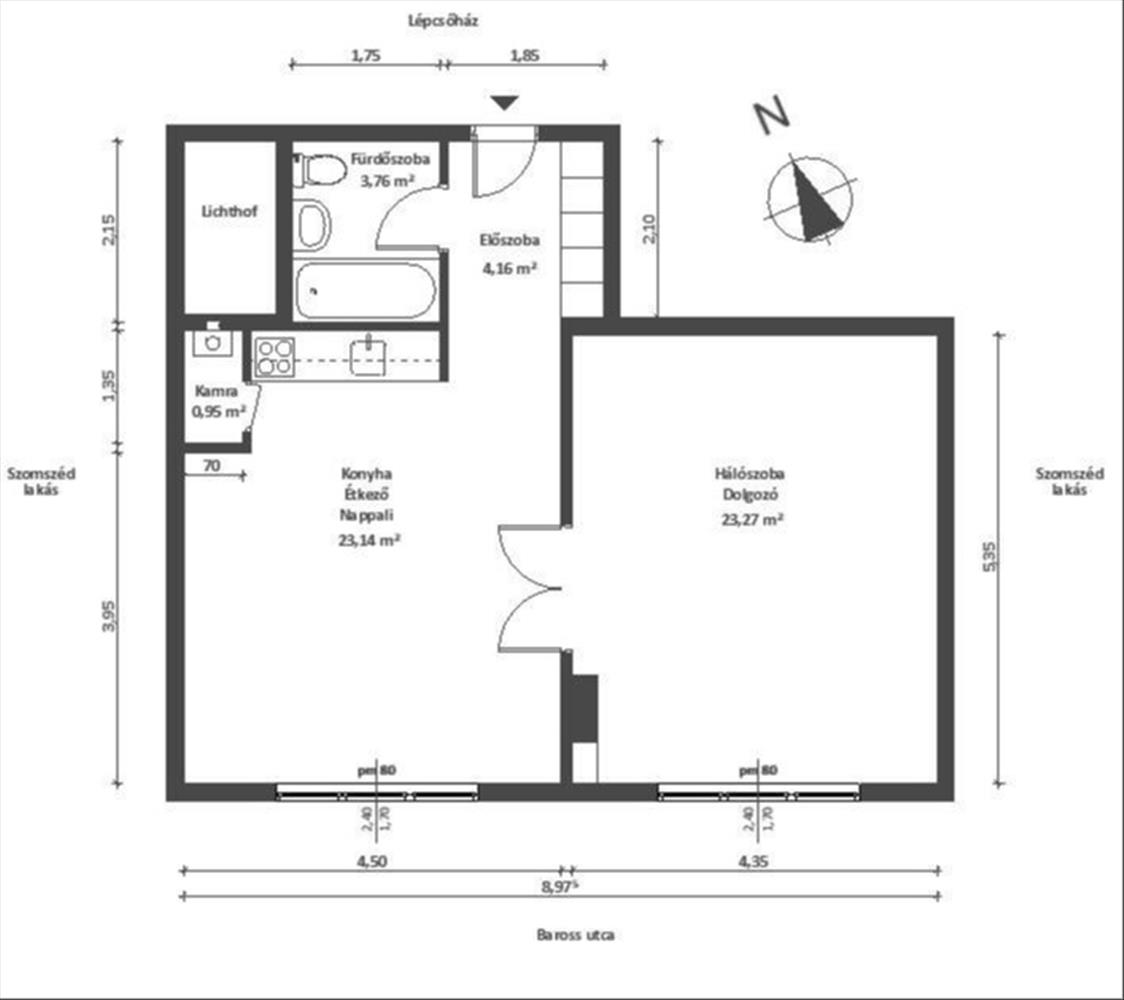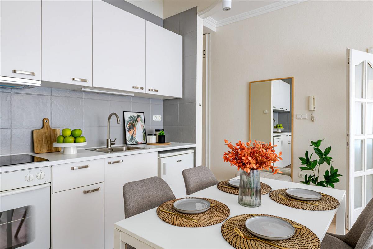 Modern burkolatok, stílusos konyha és fürdő, új vagy felújított nyílászárók, minden részletében friss, lendületes hangulatot áraszt. a két szoba ideális elrendezésű: amerikai konyhás nappali és tágas hálószoba biztosítja a kényelmet és a funkcionális elosztást.