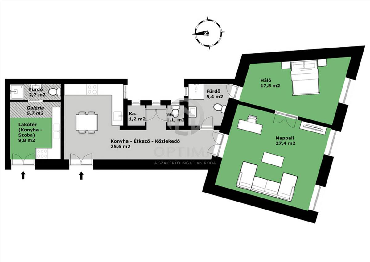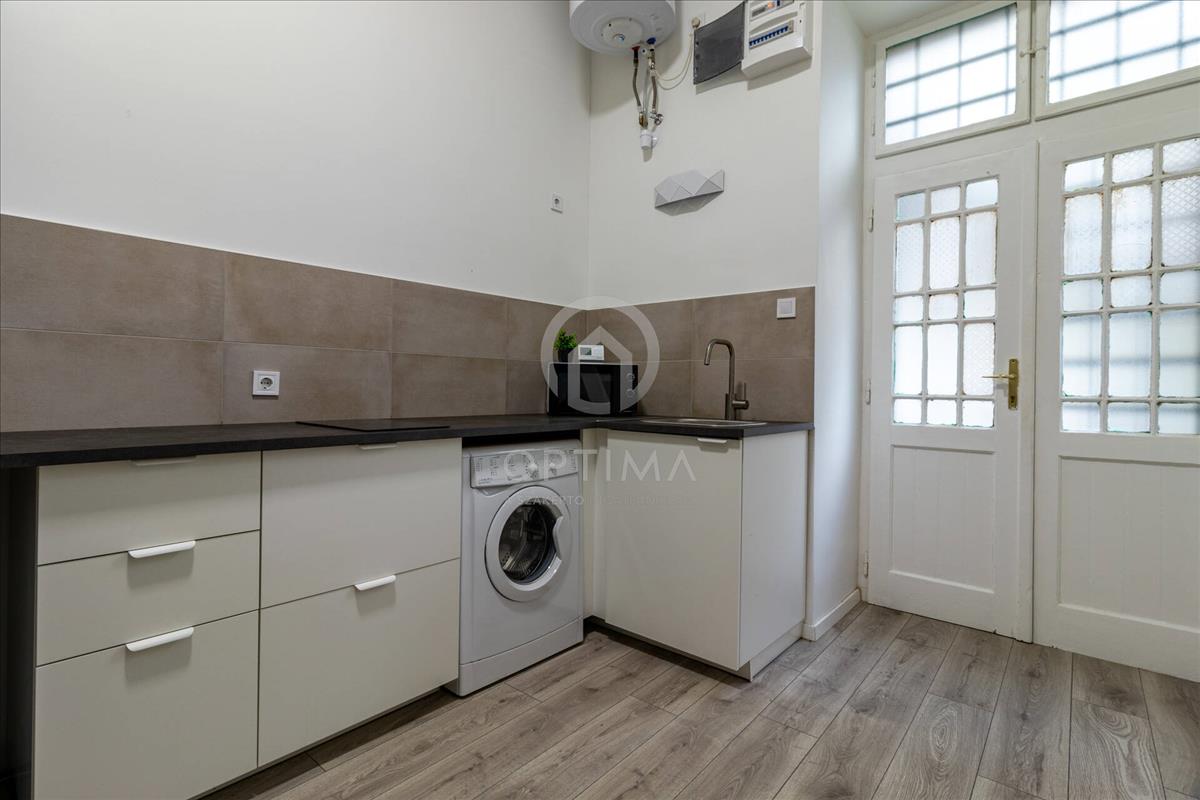 Ennek az ingatlannak a megvásárlása valójában 2 külön bejáratú lakást jelent új tulajdonosa számára. a tulajdoni lap szerint 87 m2 alapterületű ingatlanból kialakításra került egy minigarzon, amely 12-13 m2 alapterületű, valamint egy impozáns, kb. 74-75 m2 alapterületű, tágas, nappali + 1 hálószobás, polgári hangulatú, ugyanakkor mégis modern megjelenésű lakás.